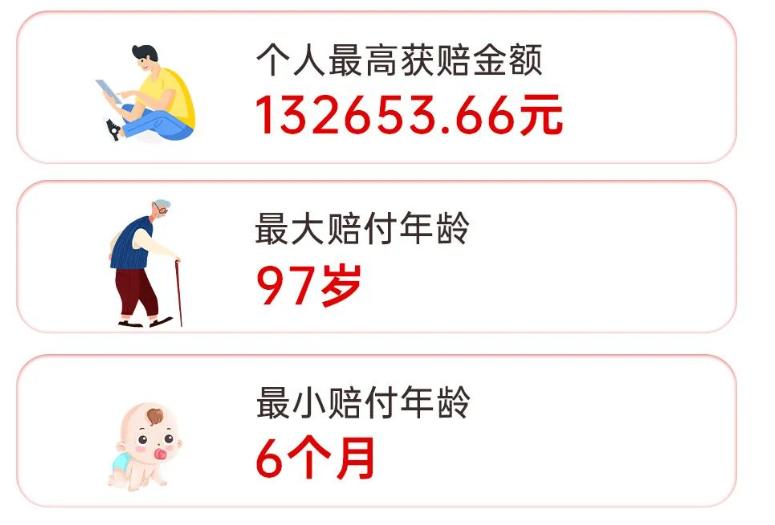 其中,个人最高获赔金额达132653.66元,最大理赔受益人年龄97岁,最小理赔受益人年龄仅6个月。有效防范了因病致贫、因病返贫现象,为来宾市的参保群众带来了实实在在的福祉。再次提醒