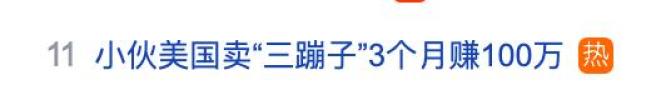 12月7日,#小伙美国卖“三蹦子”3个月赚100万#的话题冲上热搜。