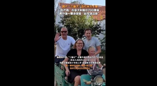 据九派新闻此前报道,11月,“三蹦子”在意大利米兰两轮车展上走红,引发国内广泛关注。在“三蹦子”展区,不少外国人坐到车上体验,与车合影,满脸笑容。