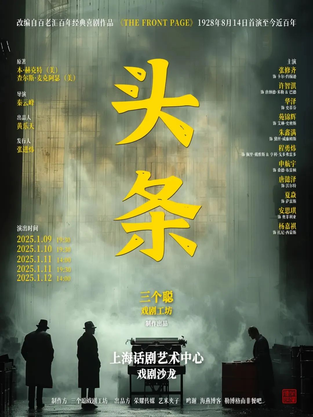 制作:三个聪戏剧⼯坊 | 出品:荣耀传媒 | 编剧:本·赫克特、查尔斯·麦克阿瑟 | 导演:秦云峰