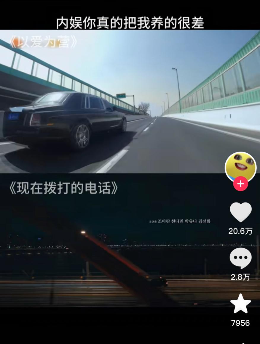 这一幕是近期热播韩剧《现在拨打的电话》中的名场面。与此并列的还有男主角白司言(柳演锡饰)发现他以为是哑巴的妻子洪熙珠(蔡秀彬饰)实际上能够说话后,驱车驶入夜色,妻子的尖叫在他脑海中挥之不去。他脚下的油门时踩时放,车速随之起伏,神情凝重而深邃,被观众称赞为“抠书式霸总演技”。