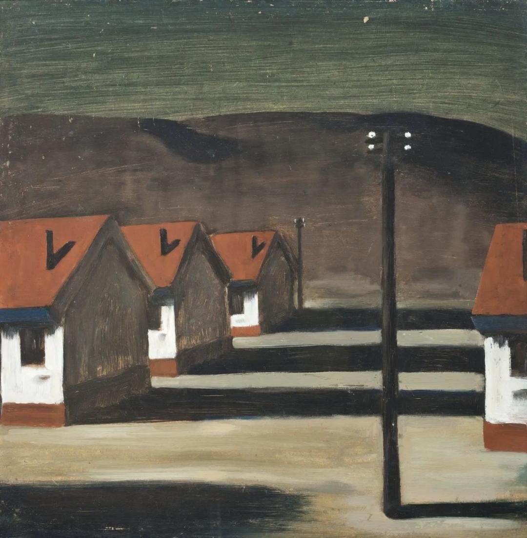 《夕阳下的公社》是谭平的早期作品,他借用意大利画家契里科的超现实主义方式,将公社的历史记忆图式化和符号化,表达了青年一代对于不太遥远的中国历史的图像性想象:单调排列的房屋、拉长的阴影、光秃秃的电杆以及模糊的山峦,看似理性克制的画面却蕴含着象征与冲动,现实的物象被置于一个神秘的空间,散发出超现实的神秘气息,此刻历史的图像更像是梦中的风景,召唤着深烙在我们内心的时代记忆。