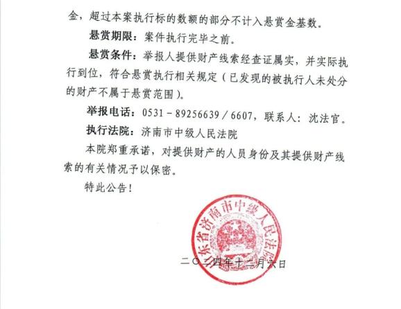 来源 济南中院原标题:《案值3000万元!济南中院发布最新悬赏公告!》