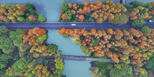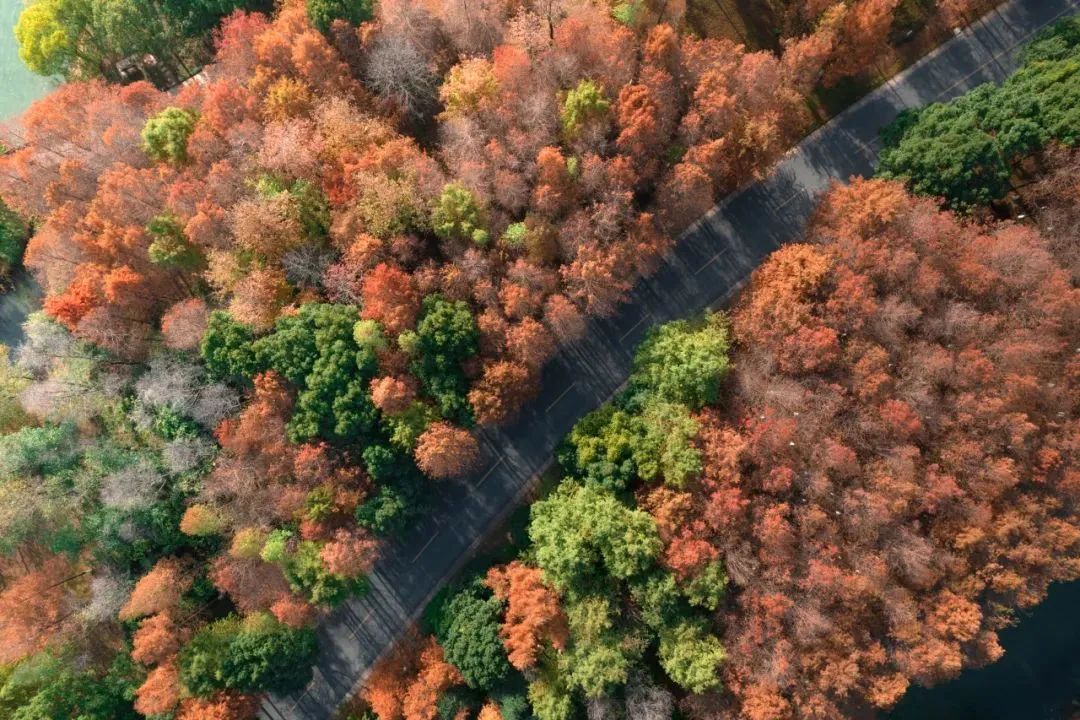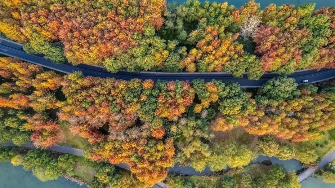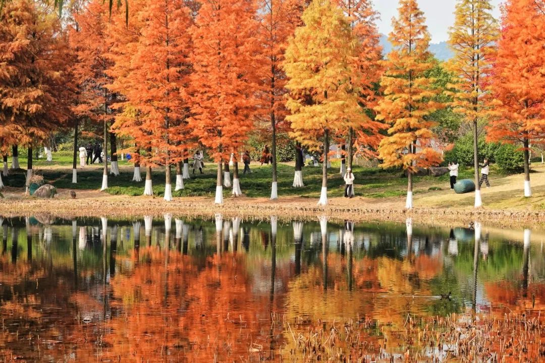 冬天的主角是叶,非花。当树叶不甘再做“配饰”,在街边、湖畔“燃”起成片炽热的“火焰”,壮丽而绚烂。在湘湖,就有这样一片红杉林,从11月中下旬开始到12月中旬,杉叶由绿变黄再转红,三色交织,将季节轮换之美抹遍山野,这番大理洱海同款美景,也常让游客感慨:赏景不必远方!