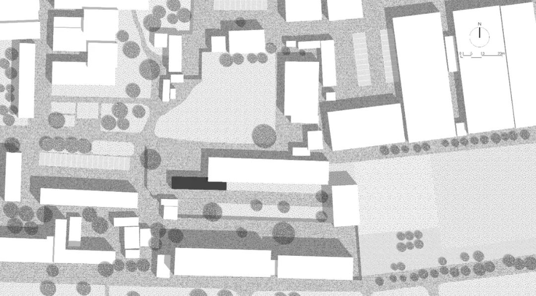 The original building is a brick-concrete structure. In order to reduce the budget, the design re-arranged the space without changing the load-bearing structure. The original walls define two spaces. The larger space on the west side is used as the coffee area, and the smaller space on the east side is used as the office area. A toilet is set up between the two areas, and the original sun room is used as a horizontal traffic to connect the three functions in series.