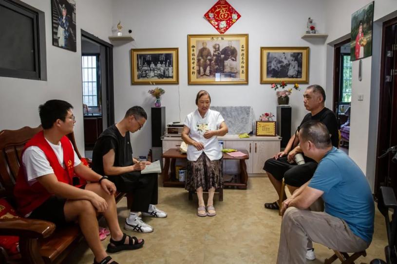摄影师进村入户采访潘家后人,墙上正中间就是第一代潘益澄夫妇的照片。林美玉 摄#3 影像与老街,希望这样的“碰撞”越来越多