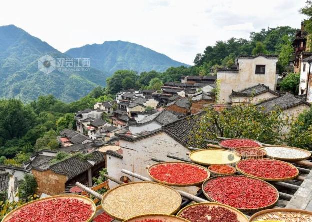 胡敦煌 摄挂在山崖上的“中国传统村落”篁岭古村,地处婺源石耳山脉,面积7平方公里,2014年获评国家4A级旅游景区,由索道空中揽胜、村落天街访古、梯田花海寻芳及晒秋民俗拾趣等游览区域组合而成。千棵古树环绕、万亩梯田簇拥,造就了篁岭世外桃源般的山居田园隐居生活。篁岭古村数百栋徽派民居在百米落差的坡面错落排布,每当日出山头,晨曦映照,整个山间村落饱经沧桑的徽式民居土砖外墙与晒架上、圆圆晒匾里五彩缤纷丰收果实组合,绘就出世界独一无二的 “晒秋”农俗景观。2023年,篁岭被联合国旅游组织评为“世界最佳旅游乡村”。