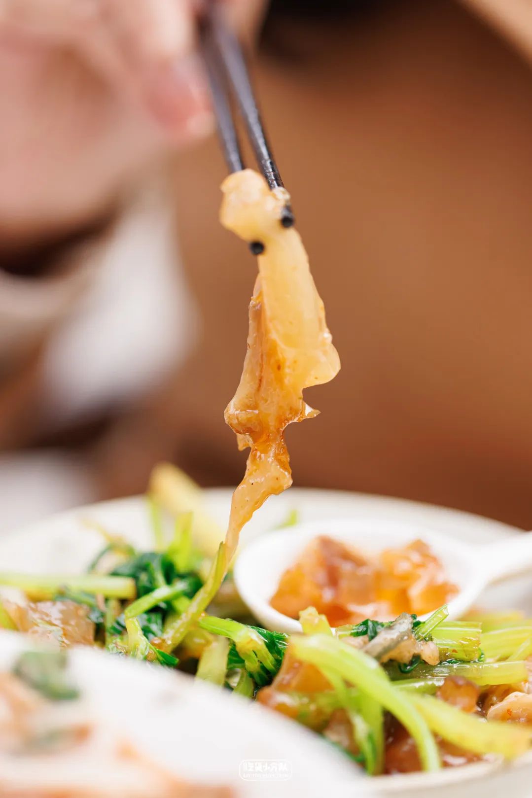 炝拌牛筋也可一试,牛筋同样是在牛骨汤大锅里炖煮过4个多小时,胶原蛋白满满,口感弹韧有嚼劲,不会过于软糯,用它家的灵魂炸葱油加上龙岩特有辣酱调成的酱汁一拌,超下饭。