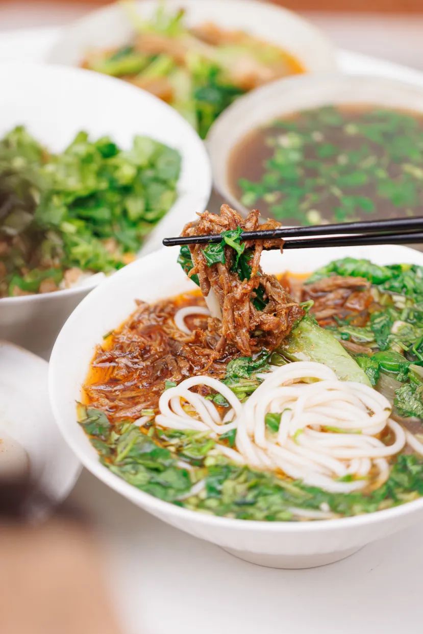 1碗客家牛肉粉,竟让一位台湾男生说:“是来上海出差1个多月尝到最接近家乡的味道”。店里配方传承沿用了福建当地开了快30年的老店,牛肉粉的汤底,以牛大骨加牛脊骨熬煮,还会添入一些陈皮、五香等中药,从早上6点多一直熬到中午11点开门,因为福建当地的汤底比较清淡,为了熬出更多“牛香味”,它家特地加大了牛骨的量。有时还会加入一些牛筋下去一起炖煮,会有些粘稠的胶质感,因为附近是宠物友好社区,每天晚上9点半后,店主还会将牛骨头免费赠给附近的宠物主人。