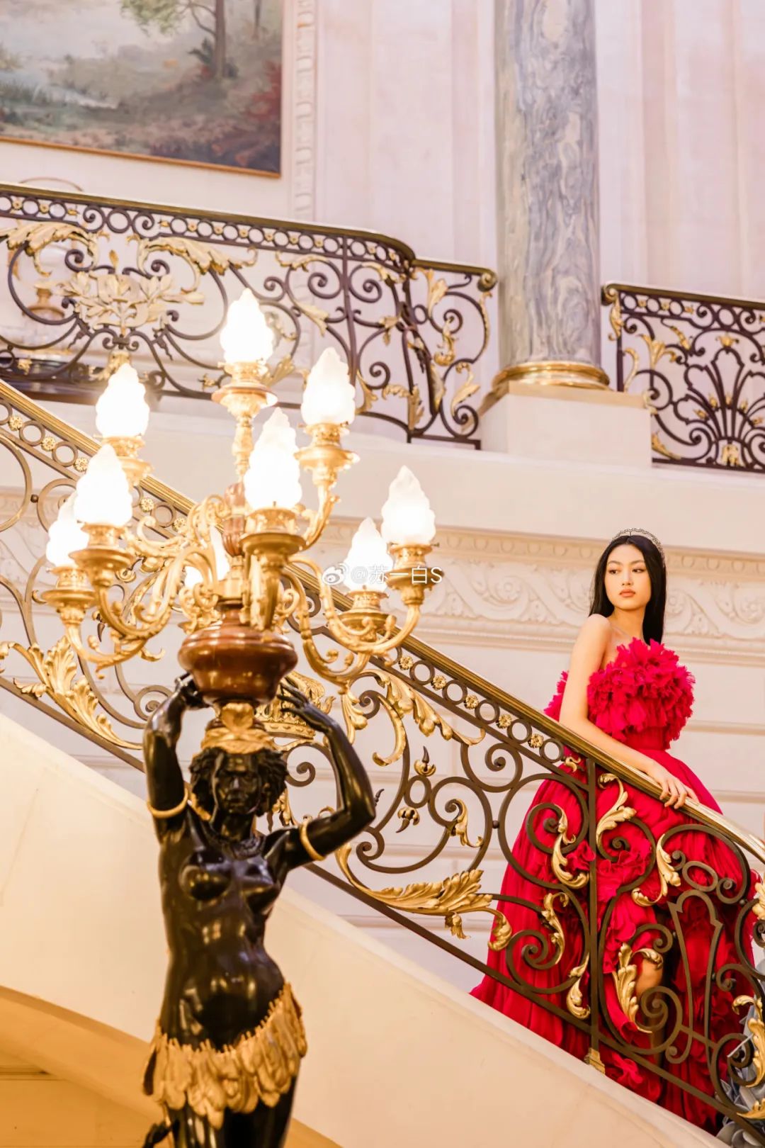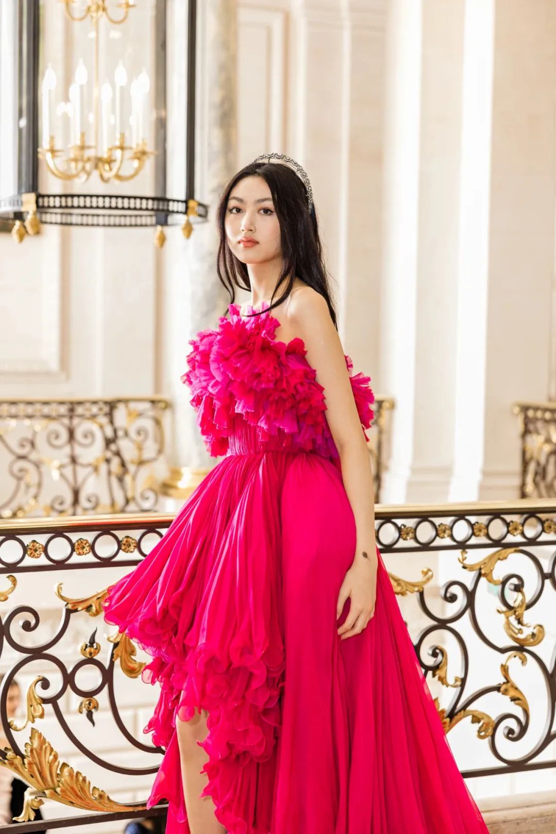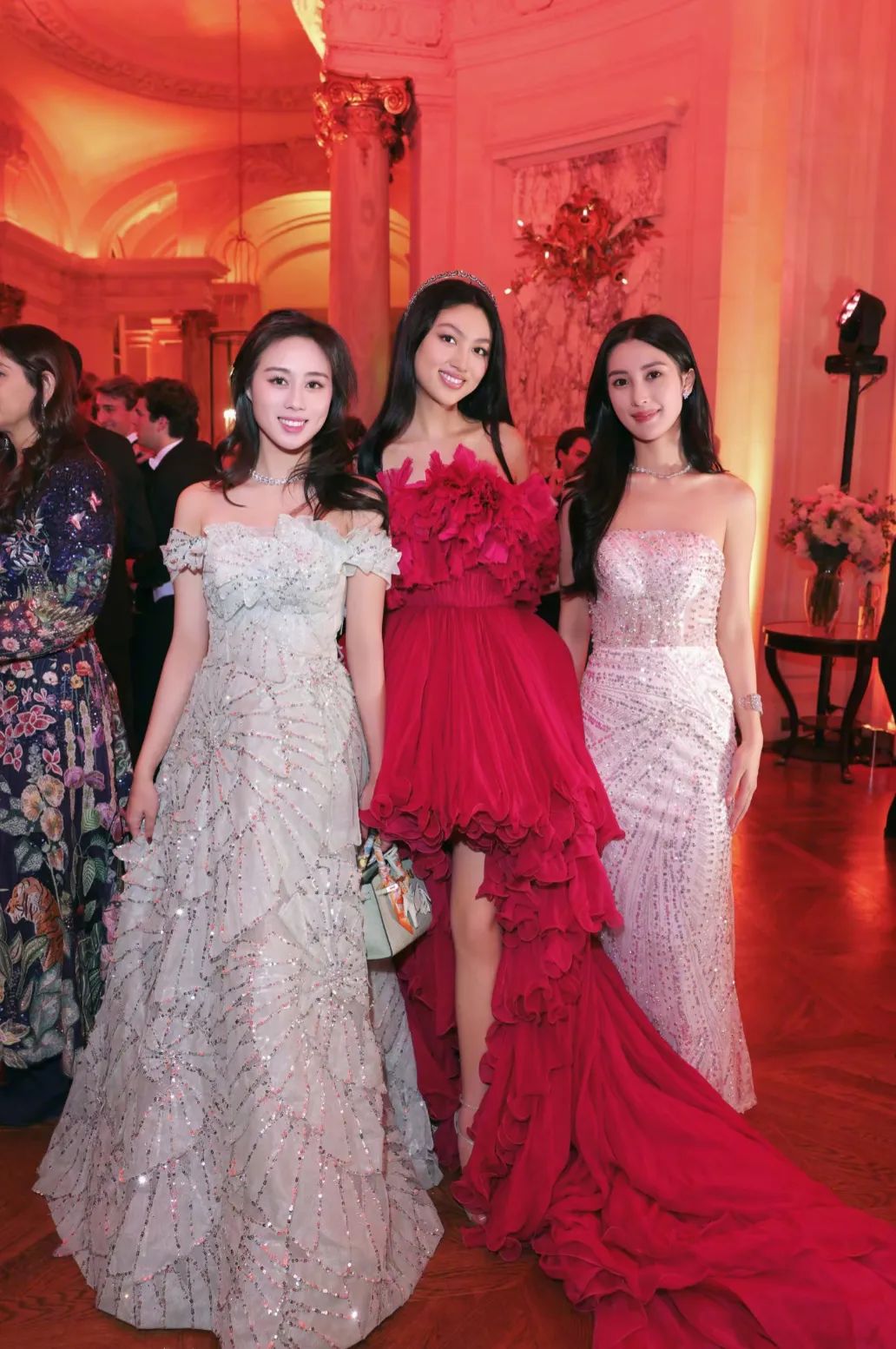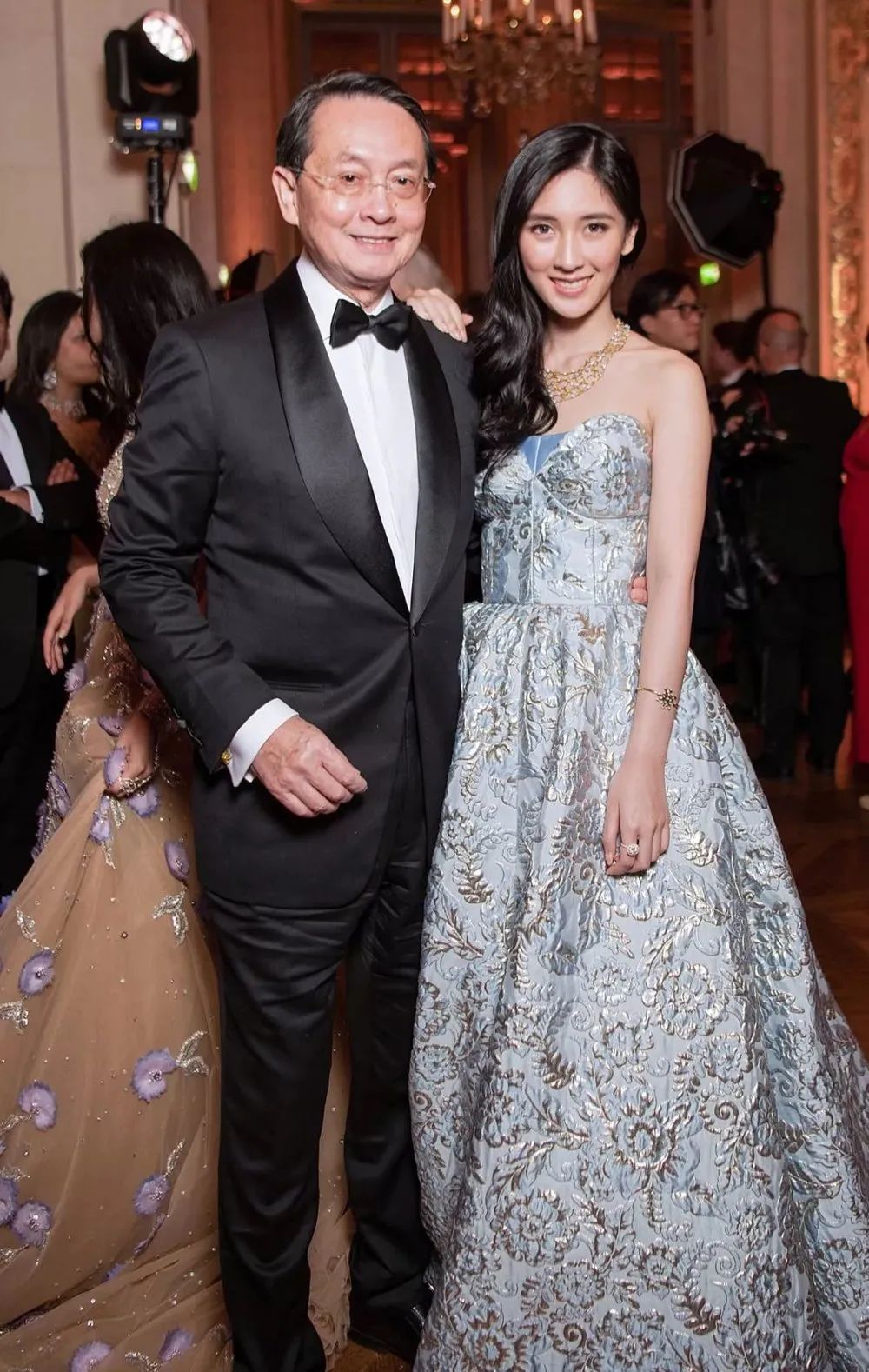 ▲ 这里我们再简单介绍一下巴黎名媛舞会(Le Bal des Débutantes),巴黎名媛舞会又被称作“青少年版的Met Gala”,舞会每年会邀请20位左右、年龄在16~22岁家世显赫的年轻女孩,简单来说,能参加舞会的女孩们非富即贵,巴黎名媛舞会既是享誉全球的社交盛世,也是上流社会女孩们的梦想之地。图源水印这次出现在受邀名单上的华人名媛,分别是任达华的女儿任晴佳和张艺谋的女儿张壹娇。