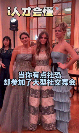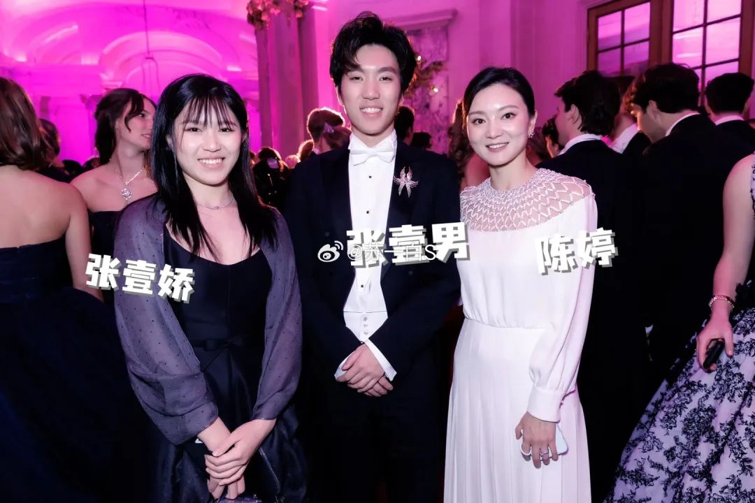 ▲ 舞会上的张壹娇在一众名媛合影social的时候,局促不安地站在角落,或许是平时被家里保护得太好,很少出来参加这类场合吧。图源水印第一次参加巴黎名媛舞会这种顶级规格的社交,又是张艺谋最小的孩子,张壹娇这次参加巴黎名媛舞会,不仅有爸爸张艺谋和妈妈陈婷的陪同,二哥张壹丁也来了。