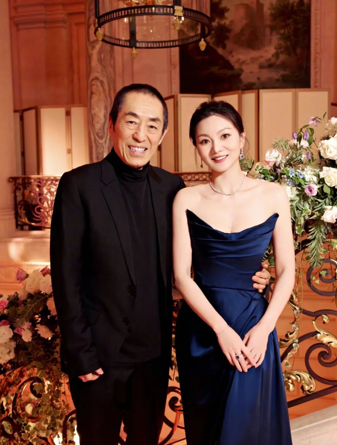 ▲ 张艺谋与妻子陈婷。今年也是张艺谋夫妇俩第二次出席巴黎名媛舞会了,去年,长子张壹男就作为男舞伴出现在舞会上,这种舞会在欧洲年深日久,专门为世家子弟提供见识社会、见识同阶层异性的机会。