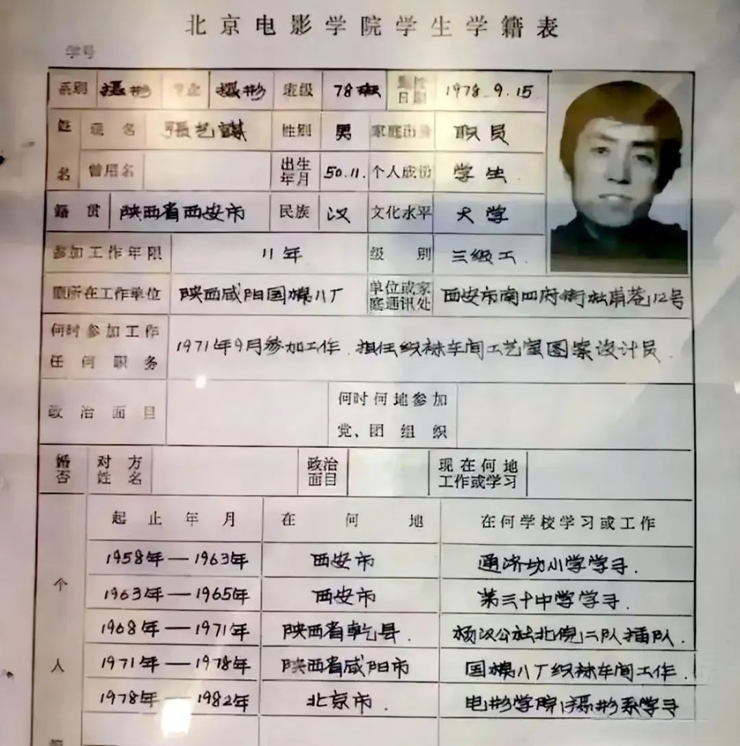 ▲ 因为出身背景,张艺谋在升学、工作等人生大问题上屡屡受挫,无论多么用功,永远是边缘人的角色,于是,自卑、隐忍,成了张艺谋自小形成的性格底色。出身问题让少年时的张艺谋错失了很多大展身手的机会,1968年,18岁的张艺谋下放陕西关中乾县,1971年,张艺谋又辗转纺织厂“国棉八厂”当工人,直到1978年进入北电读书。