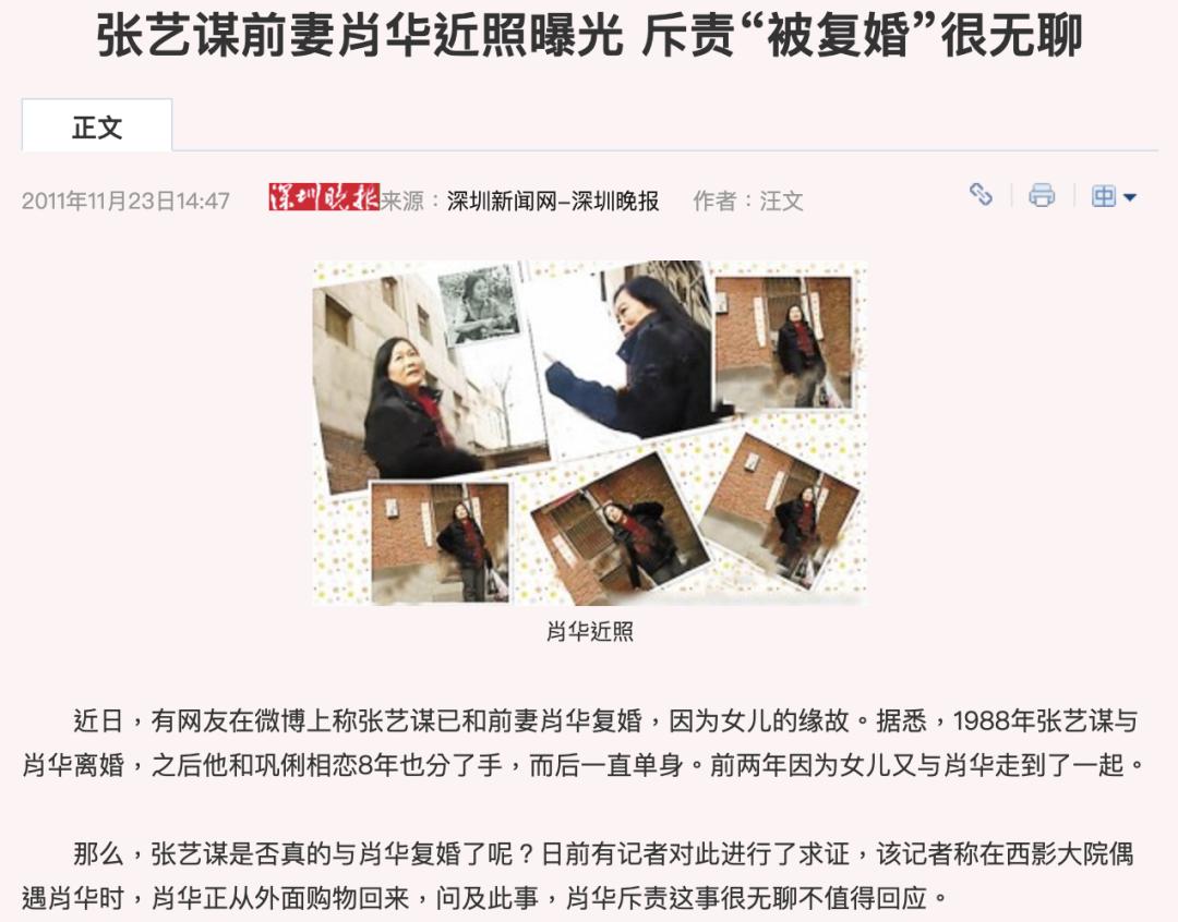 ▲ 网上能查到的肖华最近的近况,也是在十几年前的2011年了,当时有记者在西影厂大院门口偶遇肖华,肖华再次否认与张艺谋复合。1998年,15岁的张末离开西安,被张艺谋送到美国念高中,之后进入哥伦比亚大学学习建筑学。