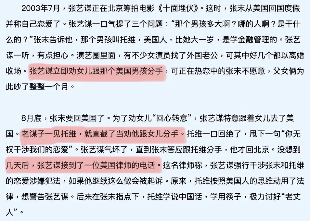 ▲ 恋爱之初,这段恋情遭到了张艺谋的极力反对,张艺谋还因此差点被托维以“干涉自由恋爱”为由告上法庭,总之,张末与托维之间的恋爱故事从头到尾都相当抓马。2006年,年仅23岁的张末和托维结婚了,选择早婚,大概也是因为年少经历过父母离婚,因此更渴望从爱情中寻找一份确切的安全感吧。