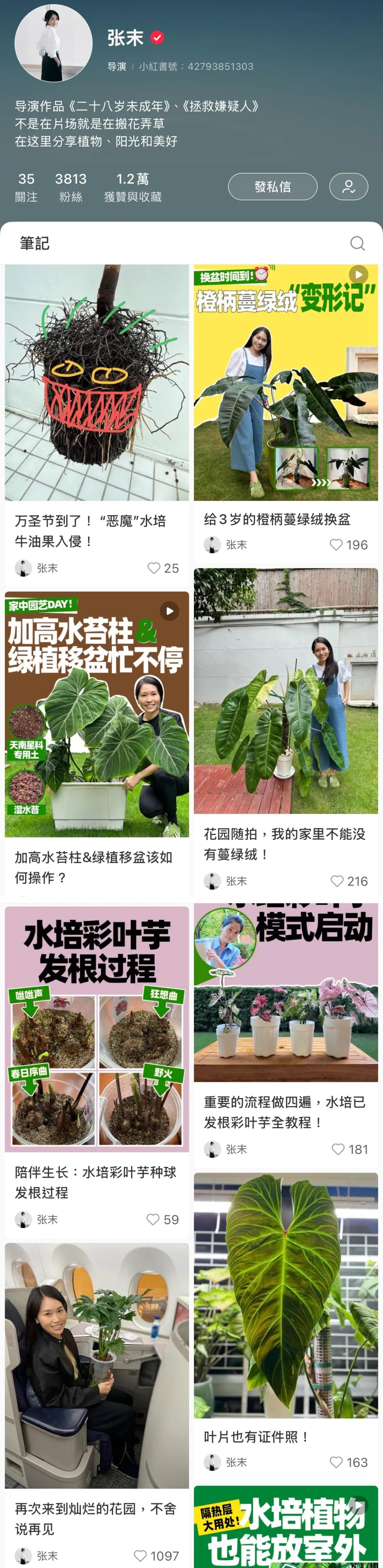 ▲ 张末的小红书上除了清一色的绿植,几乎没有晒过一点日常生活,也从没晒过老公孩子。