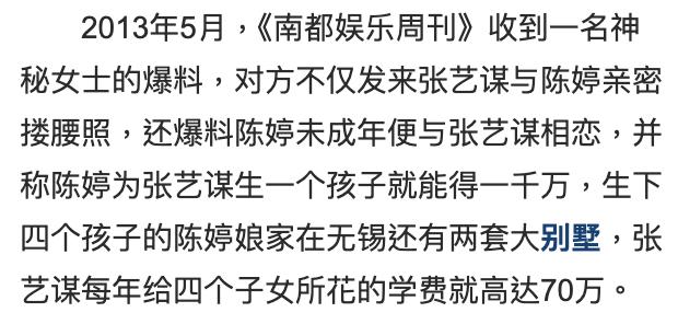 直到2013年,一则关于“张艺谋超生”的新闻登上各大媒体头条,才让张艺谋与陈婷已维持了长达十四年的“地下恋”浮出水面,为大众所知。