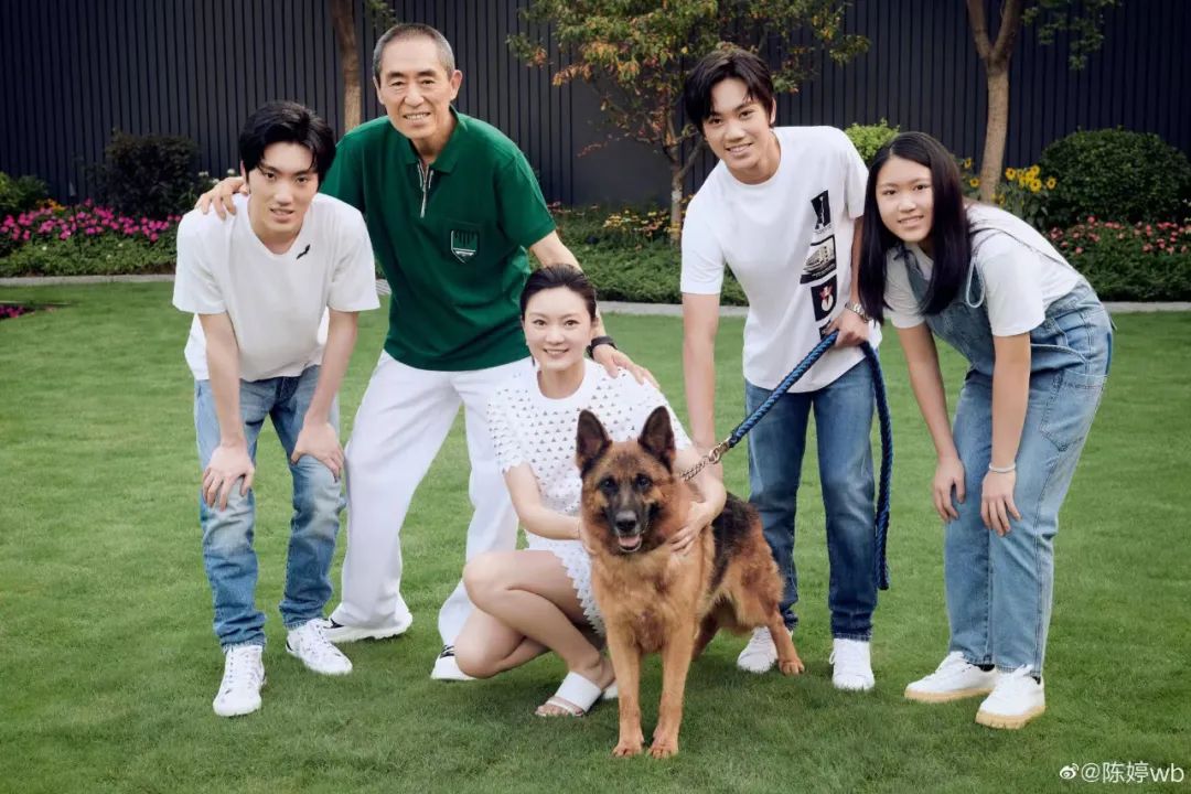 ▲ 张艺谋陈婷一家五口。要不得说人还是得有作品,和小自己31岁的年轻女人未婚生育,无论其中的哪一条,都足以让其他任何一个社会名人身陷舆论漩涡甚至身败名裂。