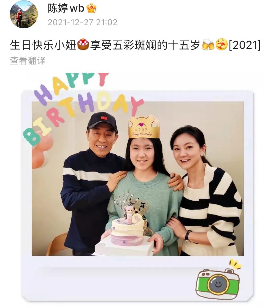▲ 陈婷最近关于女儿的一条微博,女儿还是刚刚满15岁、一脸稚气的小女孩,转眼3年过去,张壹娇已经长成亭亭玉立的少女了。