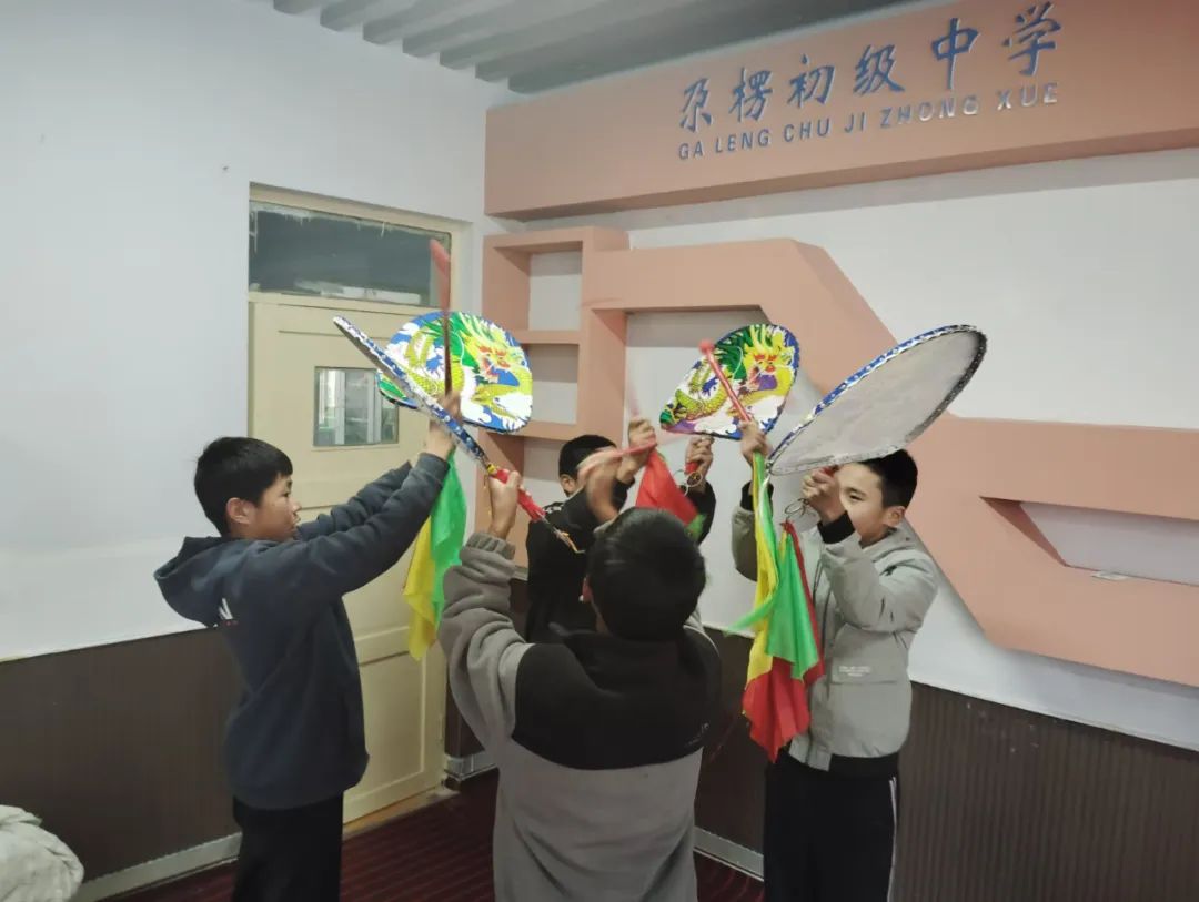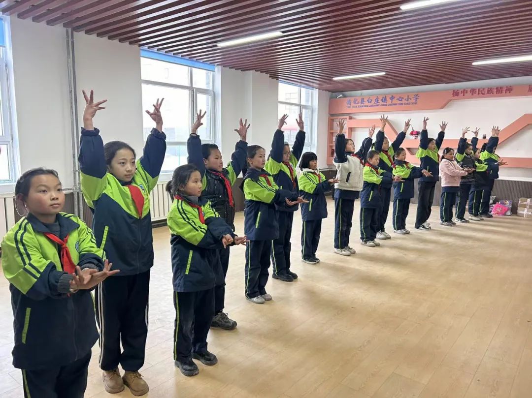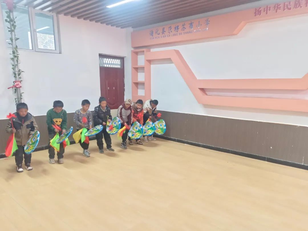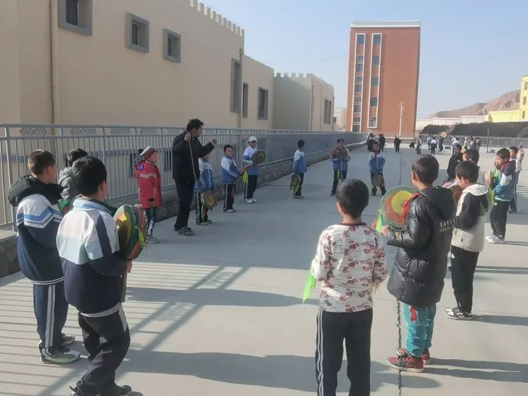青海循化尕楞苏商小学学生学习藏族龙鼓舞基本动作