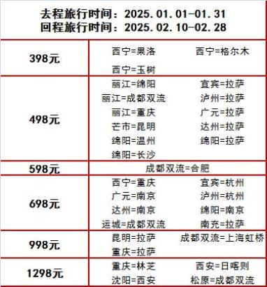 好消息!西藏航空特推出春节团圆飞次卡
