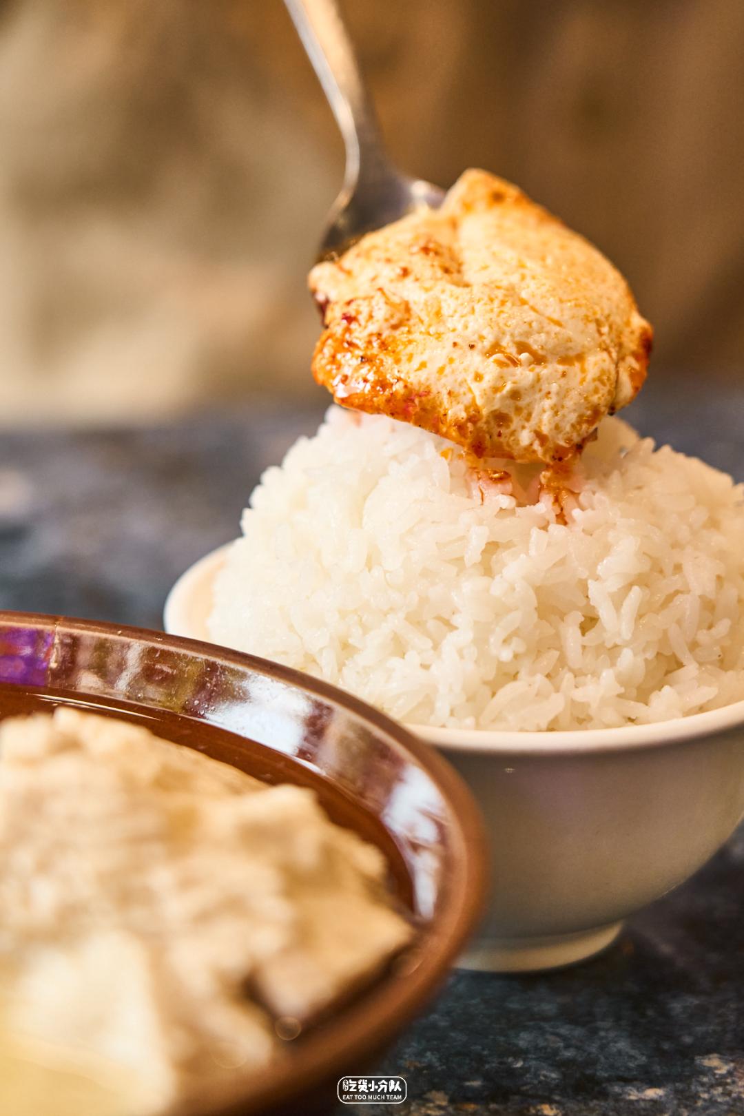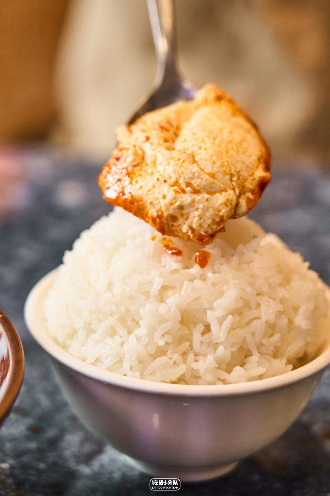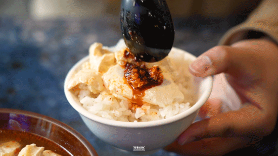 豆花饭是川渝地区最能代表平民美食的碳水小吃,价格一般也很亲民。早起吃上1碗,是很多老川渝人的习惯。白净水嫩的豆花泡在点卤时自然形成的汤水里,超浓的豆香,舀起来还能颤颤巍巍地在勺子里抖动。每家豆花饭店都配有自己的秘制蘸水,秘制糍粑辣椒、花椒、葱花、香菜……好的蘸水,能让整个豆花饭极尽升华!最正经吃法是要把蘸满辣椒的豆花捣碎拌进米饭里,火辣的海椒就像位年轻小伙,气血方刚,让舌尖热辣滚烫,口水泛滥。