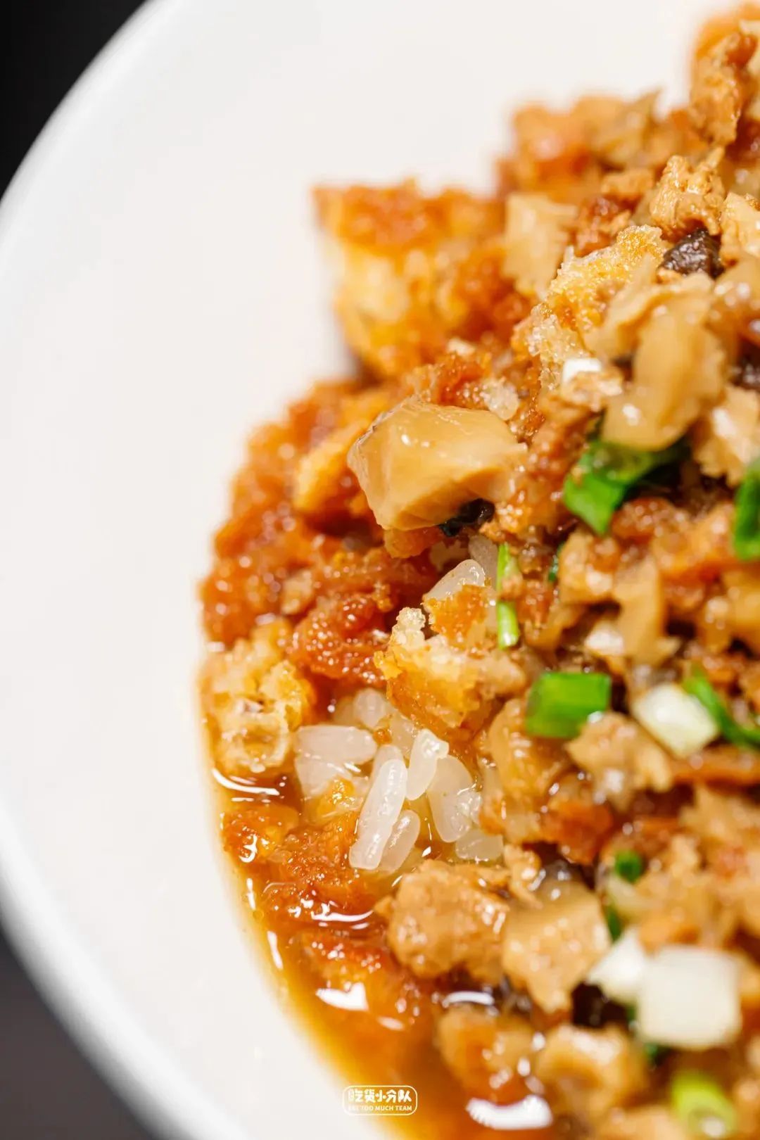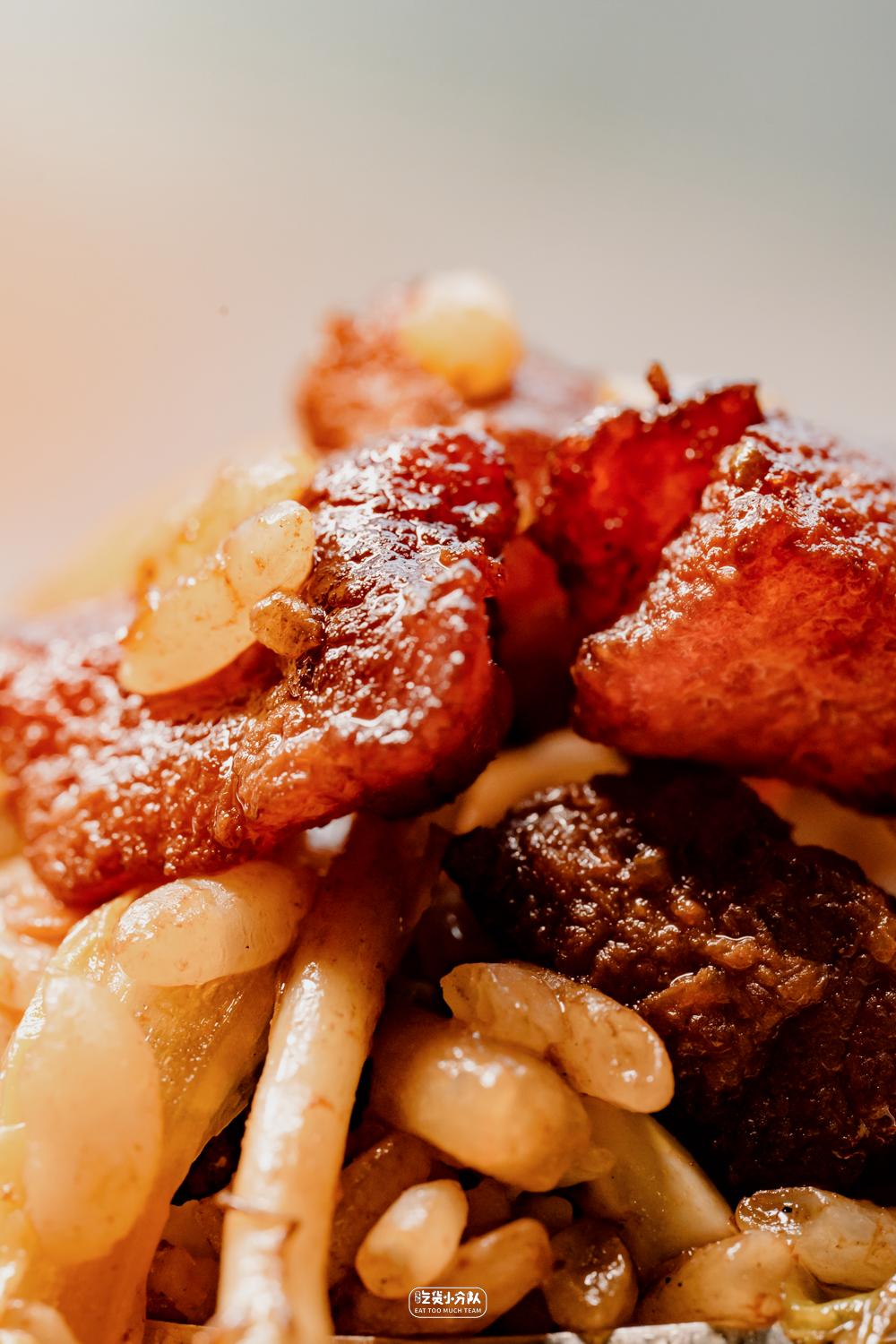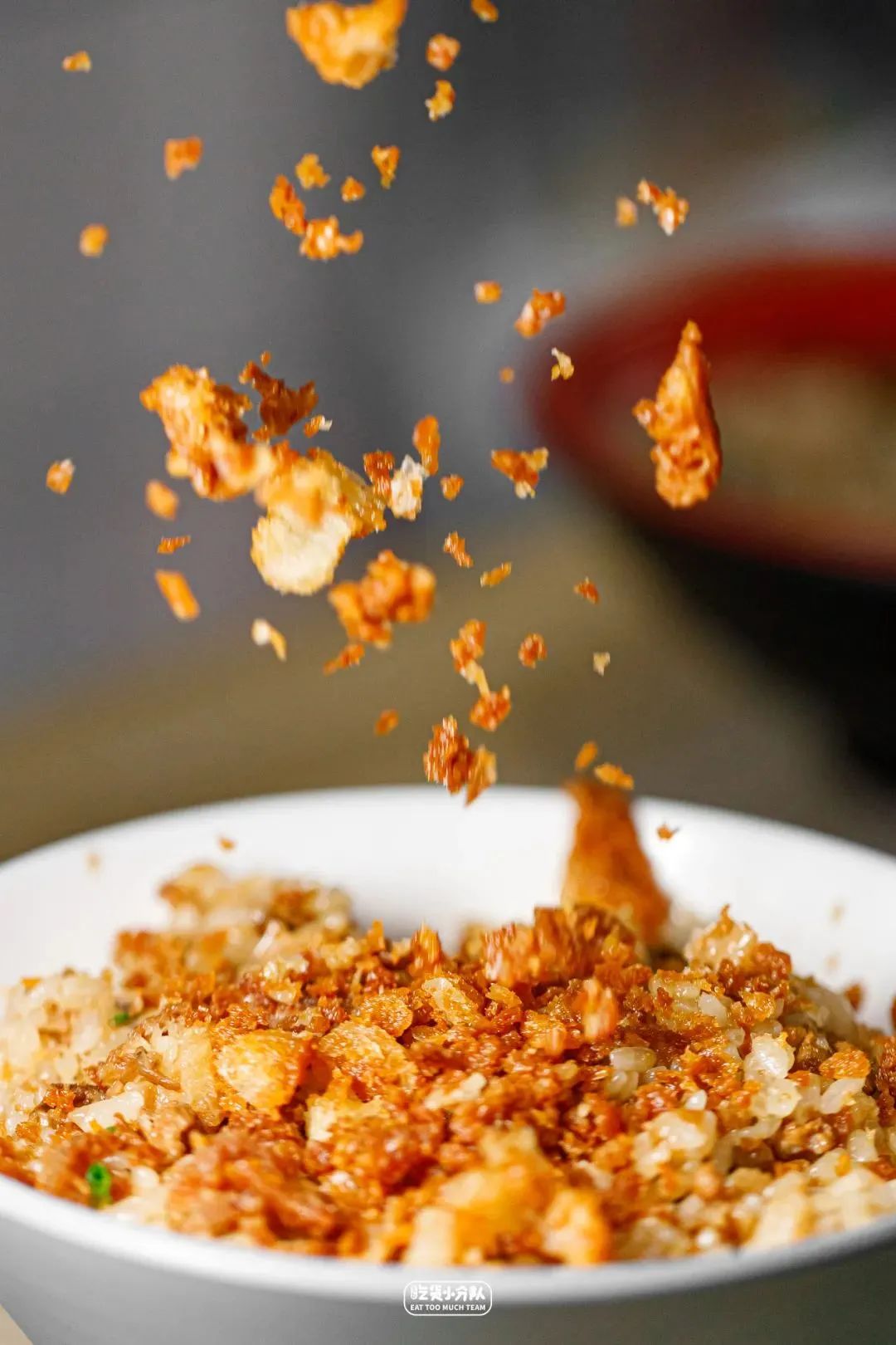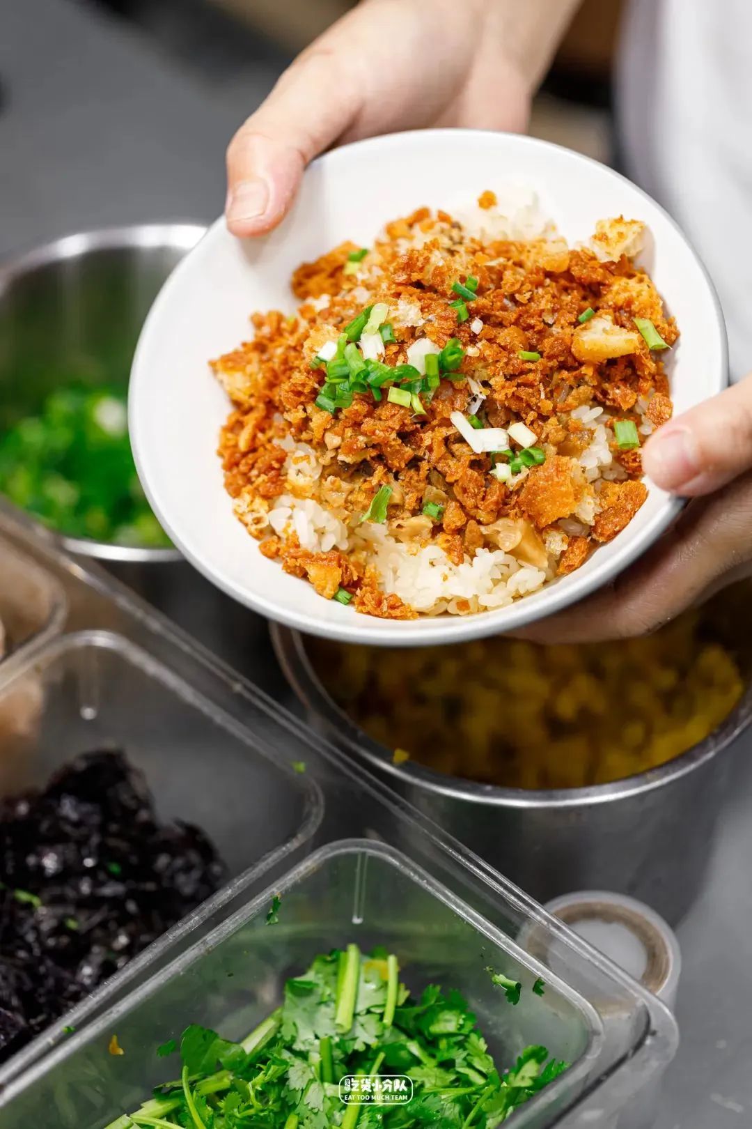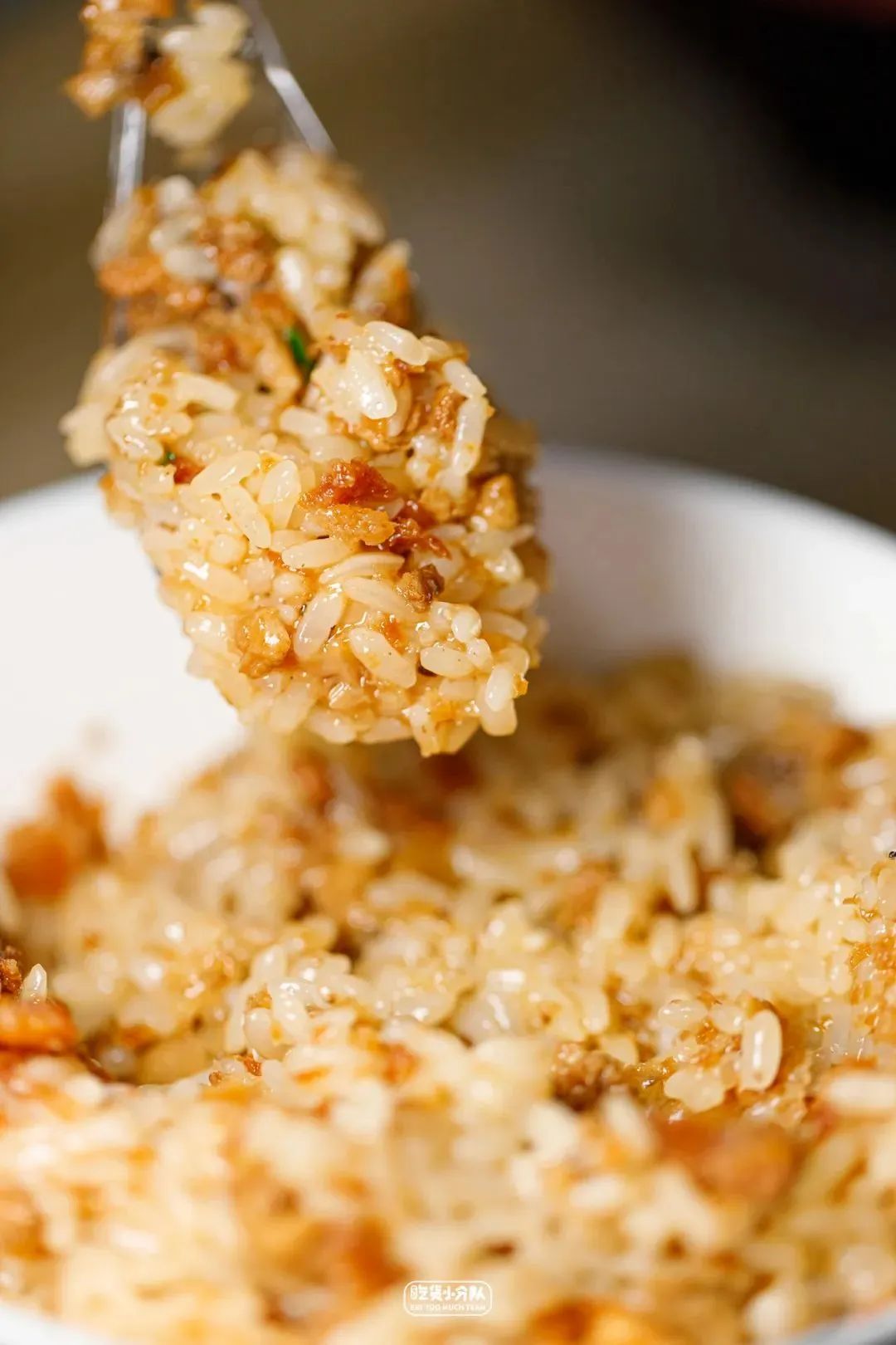 在贵州遍地开花的怪噜饭,出了省就立马失踪,上海做得正宗的也不多。一碗合格的怪噜饭,下料要狠,配菜种类要多,几乎每家的料都不太一样,常见的会放折耳根、酸豇豆、脆哨、香肠,酸甜苦辣样样都有,味道越怪越正宗。推荐往炒饭里加一份贵州特色「脆哨」,也就是用酱油炒制过的猪油渣,清脆的质地丰富了炒饭的口感层次,淡淡猪油香味让炒饭更加上头,亲测,蛮顶的。