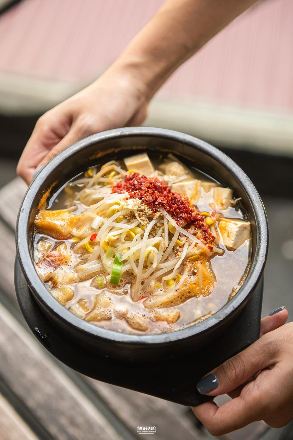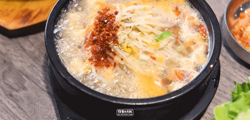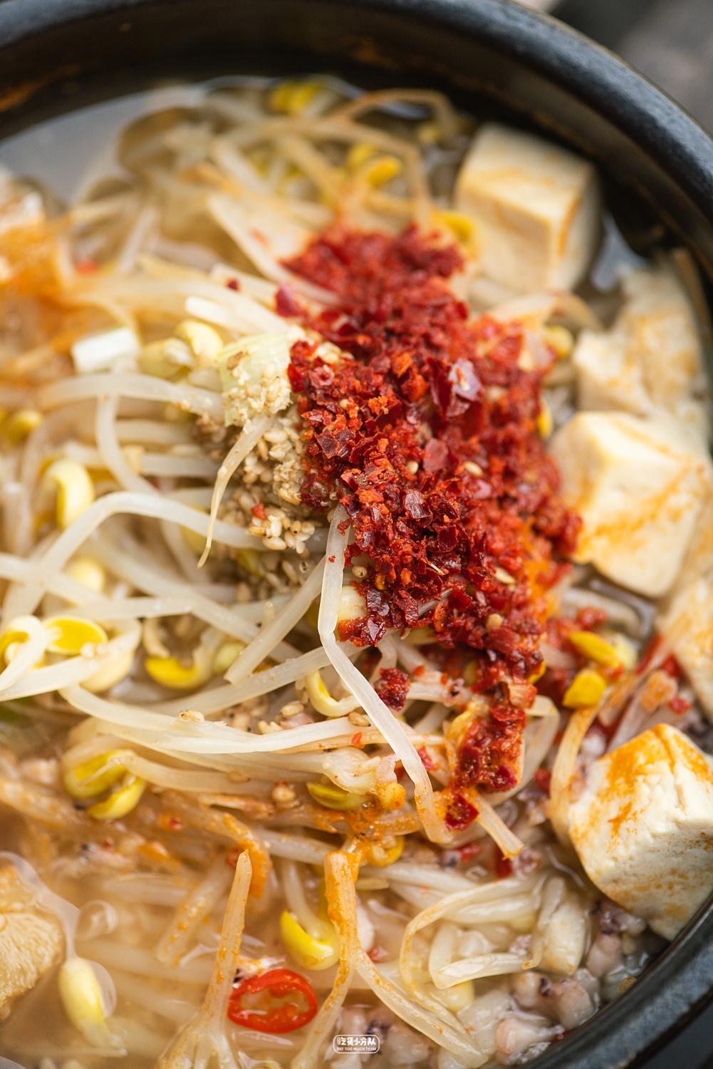 店里全是韩国食客的“韩式醒酒汤饭”店,招牌「豆芽汤饭」,据说是韩国人酒后第2天必吃的解酒饭。坐落在韩国街附近,这家尤其正宗。用小银鱼、海带、虾、萝卜等天然材料进行吊鲜的清亮汤底,看似寡淡实则很有味。新鲜的豆芽被满满的铺在饭上,撒上一小堆辣椒粉简单调味。豆芽丛中找米饭,湿润的米饭配上脆爽的豆芽和明太鱼,鲜~
