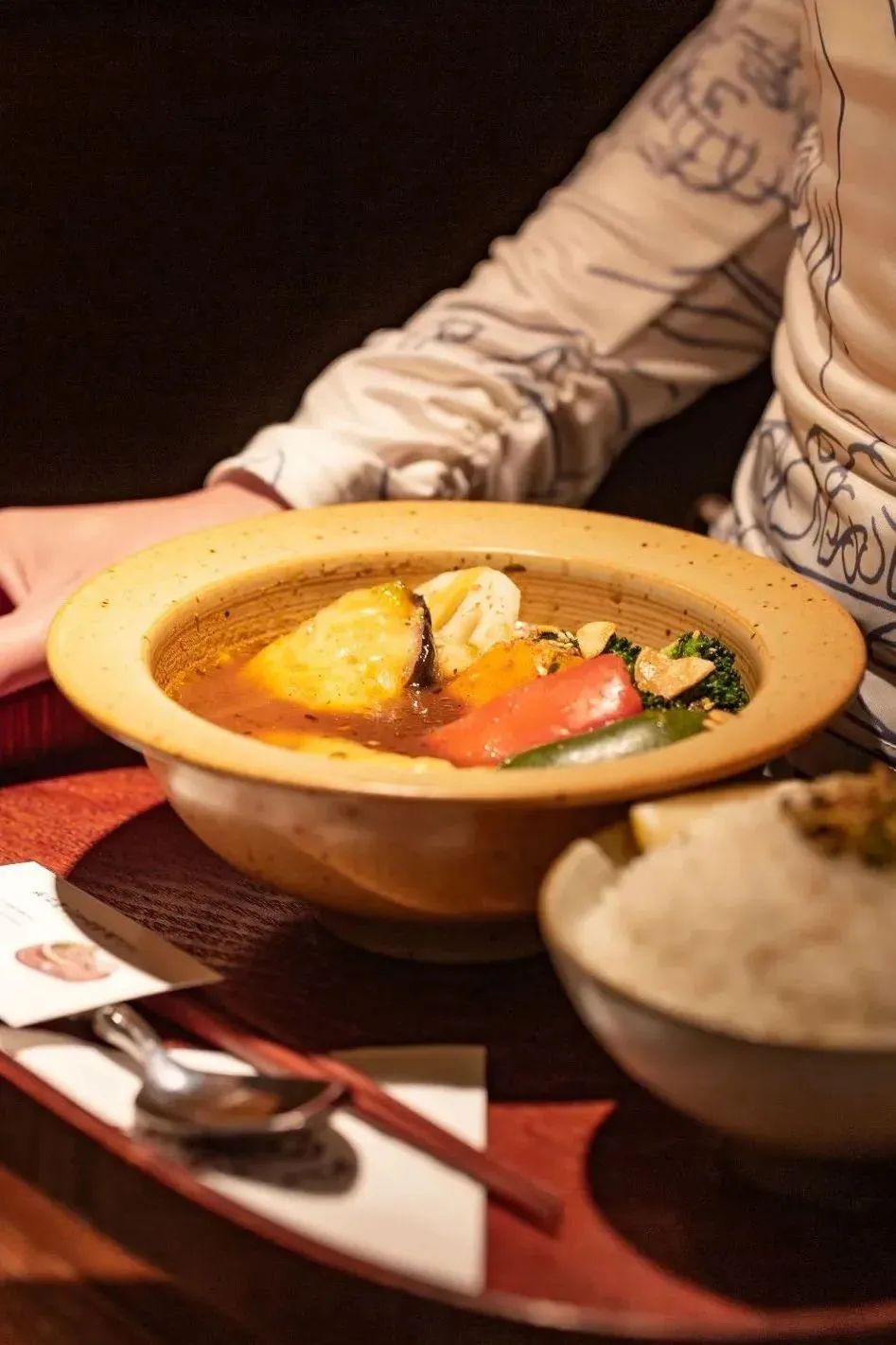 上海第1家汤咖喱饭专门店,原汁原味的当地同款。据说在汤咖喱发源地札幌,就有400+店,甚至还有专门名为《汤咖喱》的日本晨间剧,算是北海道地方名物。老板是位汤咖喱爱好者,店里的配方是尝遍无数店后才寻找到的。汤咖喱顾名思义,就是加了汤的咖喱,但调味和卖相都和普通咖喱不同:加入更多的香料,吃起来会有淡淡的苦,鸡汤汤头鲜味更足。还有1个特点,就是会加入格外多的蔬菜水果,顶部还会加芝士、汉堡肉、五花肉、生蚝等等不同的食材。