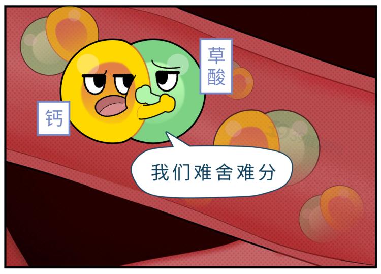 草酸从小肠进入血液后,喜欢和其中的钙离子结合,形成难溶于水的草酸钙。一般情况下,这些草酸钙会被肾过滤,随着尿液排出体外。然而如果尿液太少,或血液中大量的草酸与钙相遇,就会导致草酸钙沉淀、增大,长此以往可能发展成肾结石,出现腹痛、血尿、排尿困难等症状。