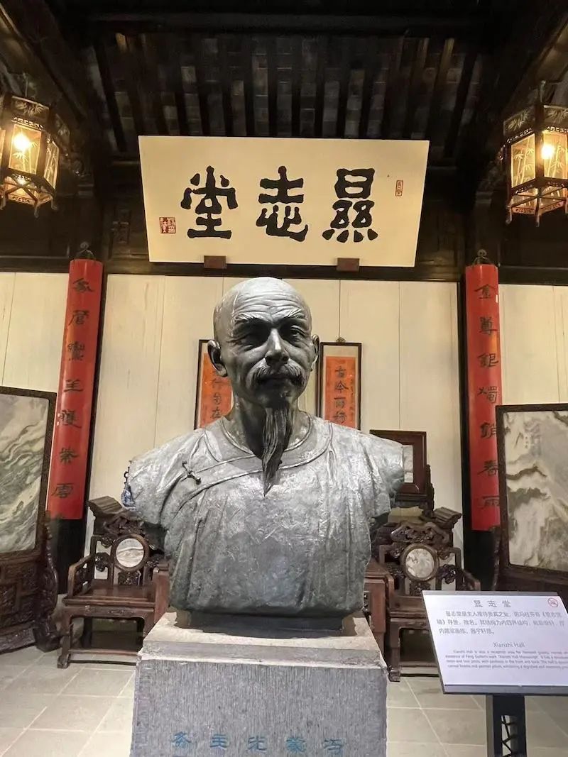 参与这一访学团的苏州文史研究者、收藏家冯雷系冯桂芬后裔,谈起先祖,一直不无自豪。他介绍,大厅的冯桂芬雕塑是他们这些后人集资所铸。