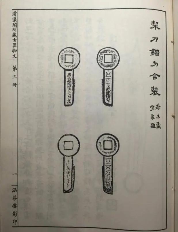 吴云两罍轩之两罍全形拓“错刀”、“栔刀”见著于《清仪阁所藏古器物文》,民国间徐珂《清稗类钞》亦作刊载。中国古代文士对古钱币赞咏最多者当推王莽铸造“错刀”,源于刀头“一刀”二字错金,又称金错刀。汉张衡诗云:“美人赠我金错刀,何以报之英琼瑶。”