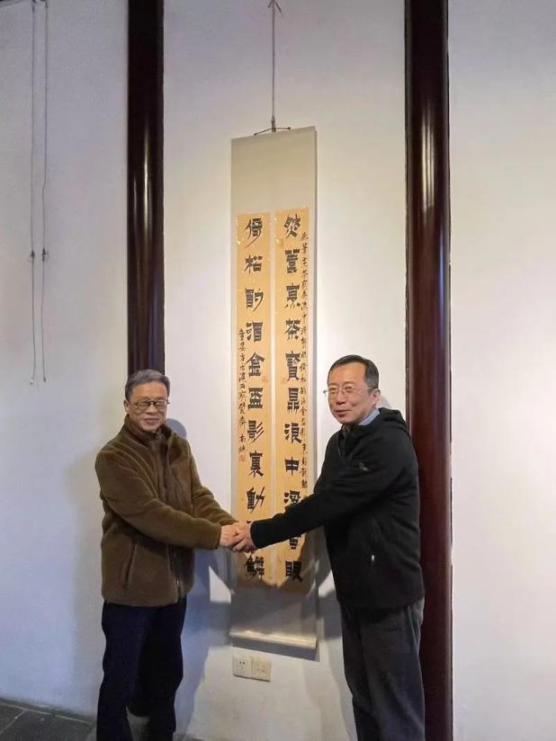童衍方向苏州国画院赠送书法对联访学团其后专程到新开馆不久的桃花坞美术馆,参观了小莽苍苍斋所藏清人翰墨精品,这一特展囊括了有清一代苏州的状元、知名学者及书坛名宿诸如曾国藩、林则徐、魏源、金农、陈曼生、阮元、汪琬、郑板桥、刘墉等人的珍品翰墨,包括条幅、楹联、册页、手卷、扇面、书简、铭砚、名章等。