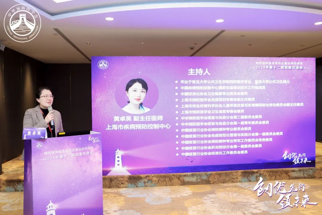 - 左右滑动查看更多 -本次验收分为两个部分。上午,来自全国各地及上海市各区的领导和专家齐聚衡山北郊宾馆,展开了一场学术交流盛会。会议伊始,中华预防医学会副秘书长刘霞、上海市疾病预防控制中心副主任孙晓冬及宝山区卫健委、区疾控局局长钱晓忠分别发表了热情洋溢的致辞。随后,中疾控曹玲生、山东省疾控张伟燕、天津市疾控陈伟、上海市疾控谷利妞分别就创优项目预防接种示范示教单位审评细则介绍、中国百日咳免疫策略的发展与应用、规范开展预防接种知情告知、特殊健康状态人群疫苗接种进行深入的分享与交流。