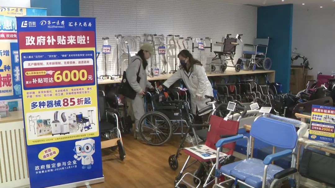 上午,记者在南京路步行街上的第一医药旗舰店医疗器具区域看到,作为政府指定享受政府补贴门店之一,相关提示已经摆放在醒目位置,市民刘小姐一边挑选手推轮椅,一边详细询问政府补贴的相关情况。“我今天是打算来买轮椅的,正好看到了政府补贴,本来只要1180元的轮椅现在优惠230元,只要950元,非常划算。”正在咨询的市民李小姐告诉记者。