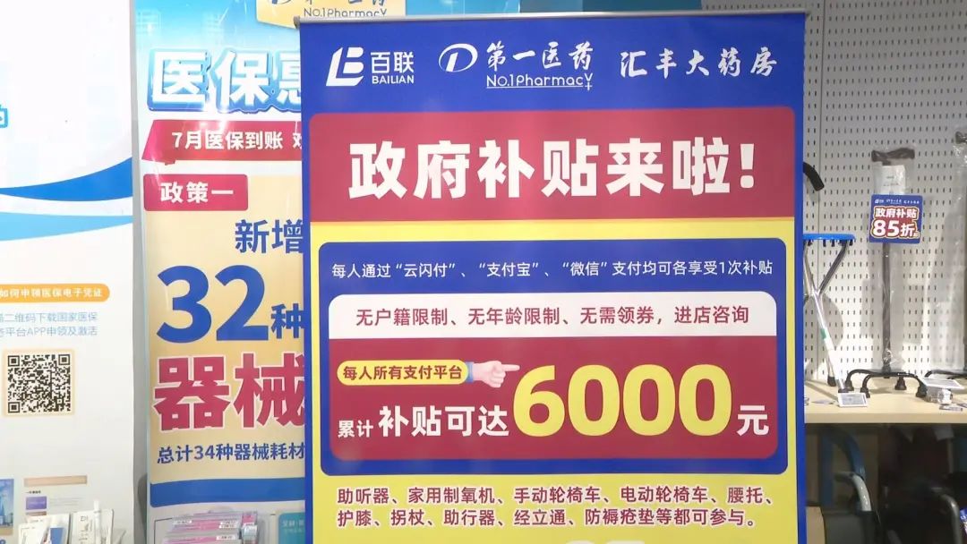 第一医药楼面经理廖虹告诉记者,第一医药作为政府指定企业有多种品类的医疗器械参与补贴,多种器械补贴后85折。每人通过“云闪付”“支付宝”“微信”支付,都可以享受1次补贴。每单补贴不超过2000元,每人累计不超过6000元。