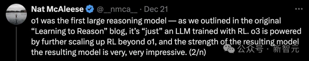 OpenAI研究员Nat McAleese在o3发布当天,分享了一些关于模型的介绍。他表示,o3代表着通过强化学习在通用领域的巨大进步。