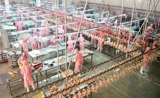 ▲汾西县洪昌养殖有限责任公司屠宰分割车间。(资料图片) 侯建兵摄曲沃县史村镇张范村智能大棚科技范儿满满