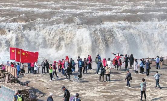 ▲壶口瀑布吸引大量游客观赏拍照。闫锐鹏摄今年以来