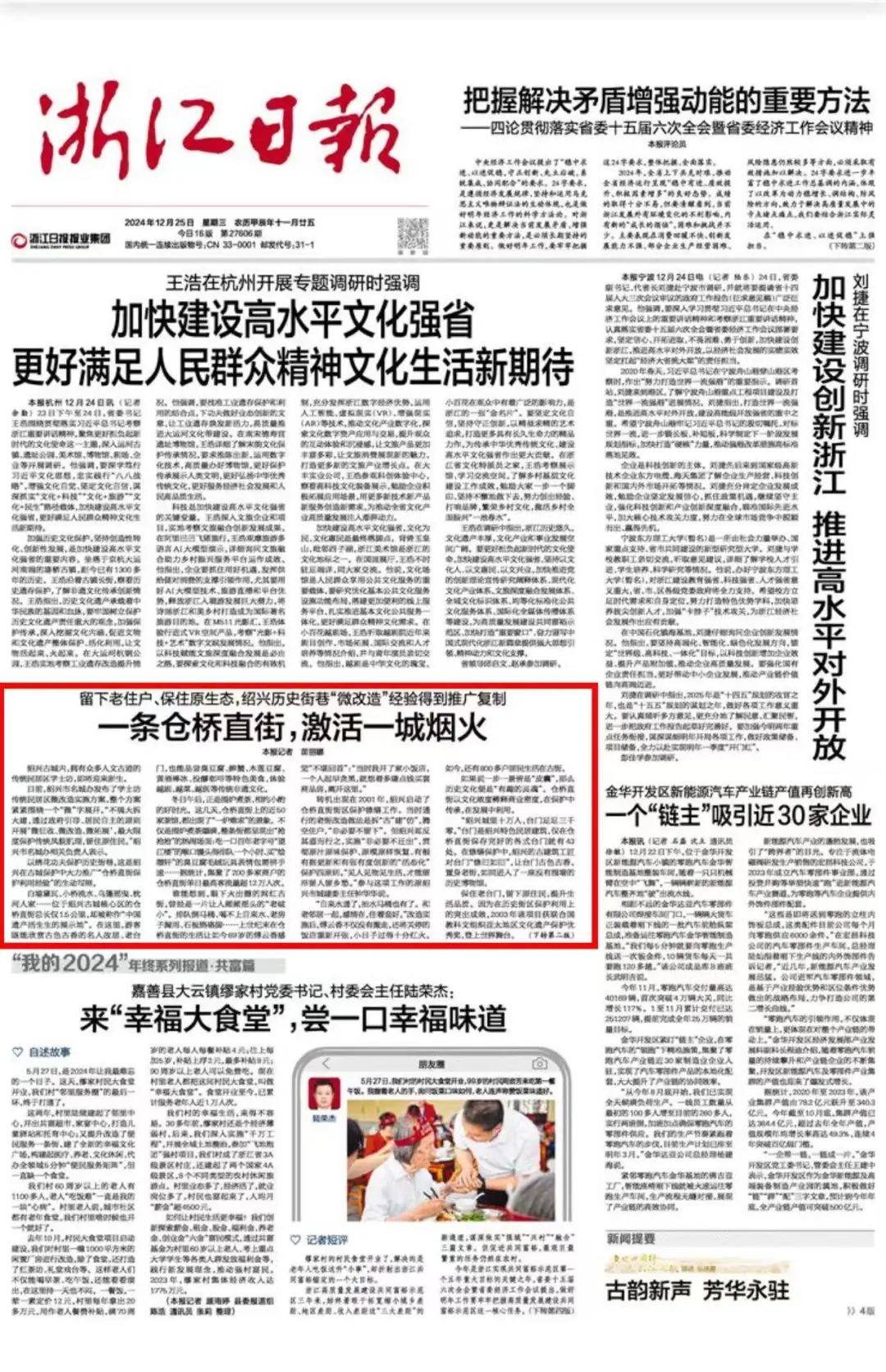 绍兴这条街,《浙江日报》头版点赞!