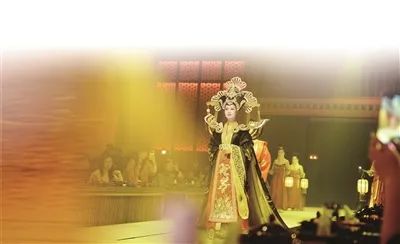 此次依托洛阳新商业综合体十三坊打造的升级版“武皇盛宴”,不仅承载力有较大提升,节目也进行了全新升级,采用全息投影、巨幅水幕、升降舞台等技术,打造全场景的视觉冲击。宴会大厅内,御宴罗列,长案餐台摆放整齐,灯光与餐具交相辉映,营造出浓郁的宫廷氛围,更有“妆造司”为宾客精心打造盛唐妆容。宾朋落座,身穿飘逸汉服的演员在威亚的助力下“御风而行”,令人赞叹。时长约一个半小时的演出,故事情节更加丰满,伴着或急或徐的古乐声,演绎出武则天的传奇一生。
