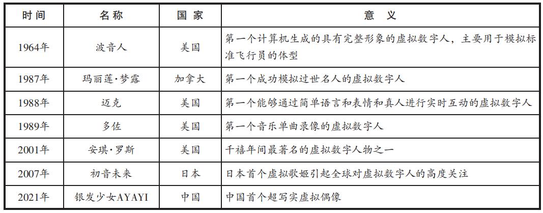 表1 虚拟数字人的发展进化表(二)