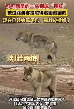 主动靠近人类乞食|央视新闻它与人类的这些互动被发到网上,网友们甚至为它编排出了一套从“没落狼王”到为了蛋黄派路边躺平的狼生剧本。更多想要追赶潮流或流量的人慕名前来,网红狼的行为也发生了变化——为了乞食,它不仅主动接近人类,还会像宠物犬一样摇尾巴、翻肚皮来像人类撒娇。因为食物充足,它的体型迅速圆润起来,甚至还会挑食。