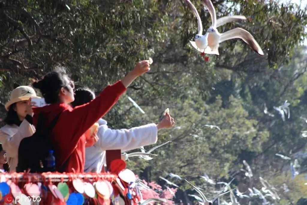 人们在滇池边投喂红嘴鸥。“人鸥互动”的弊端还不止于此,点击图片了解更多|东方IC疾病传播