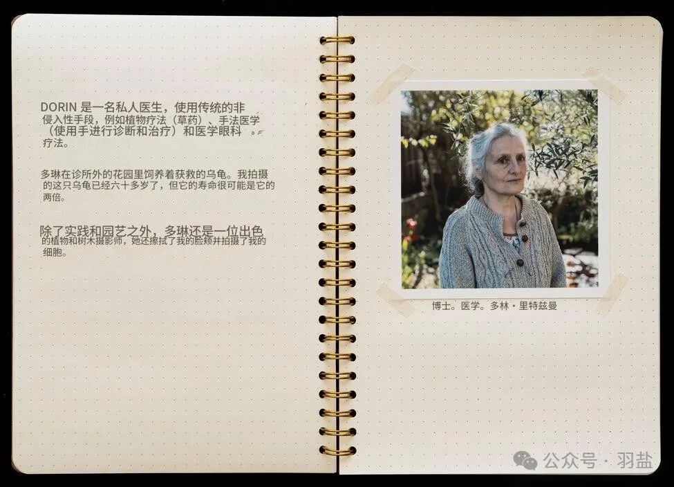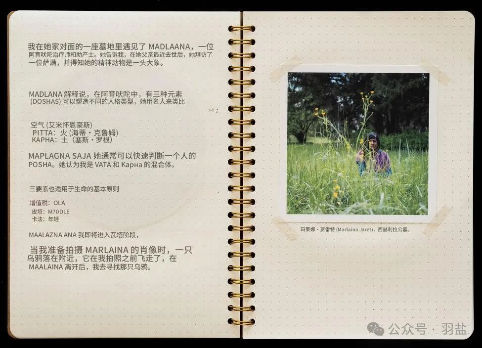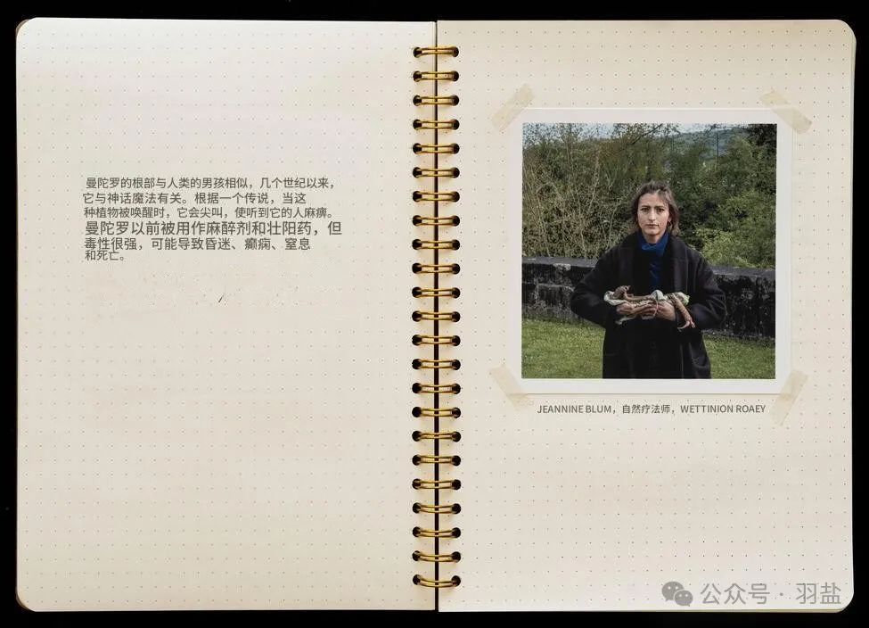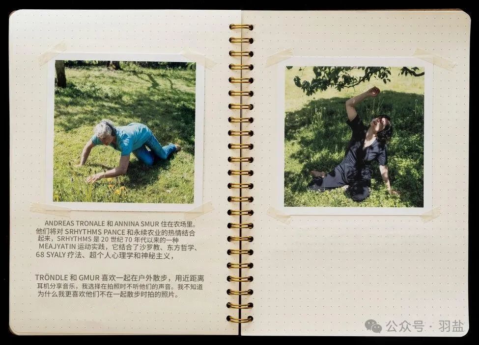 他访问了那些与能量与疗愈相关的职业人士——占卜师、森林浴者、萨满、草药治疗师、催眠师、通灵人等。他深入了解他们的工作现实,亲身体验这些特殊的实践,并在他们非凡的世界中拍摄人物肖像。这一创作过程形成了《利马特河谷日记》。这本摄影日记,辅以艺术家手写的思考与印象,为我们提供了一个独特的视角,展现了一个常常在隐秘中运作的场景,甚至是一种文化。《利马特河谷日记》记录了一次探索风景与人类之间关系的摄影之旅,并关注其中蕴含的能量。索思说:“这项作品探讨了与地方的触觉相遇所带来的修复力量。”