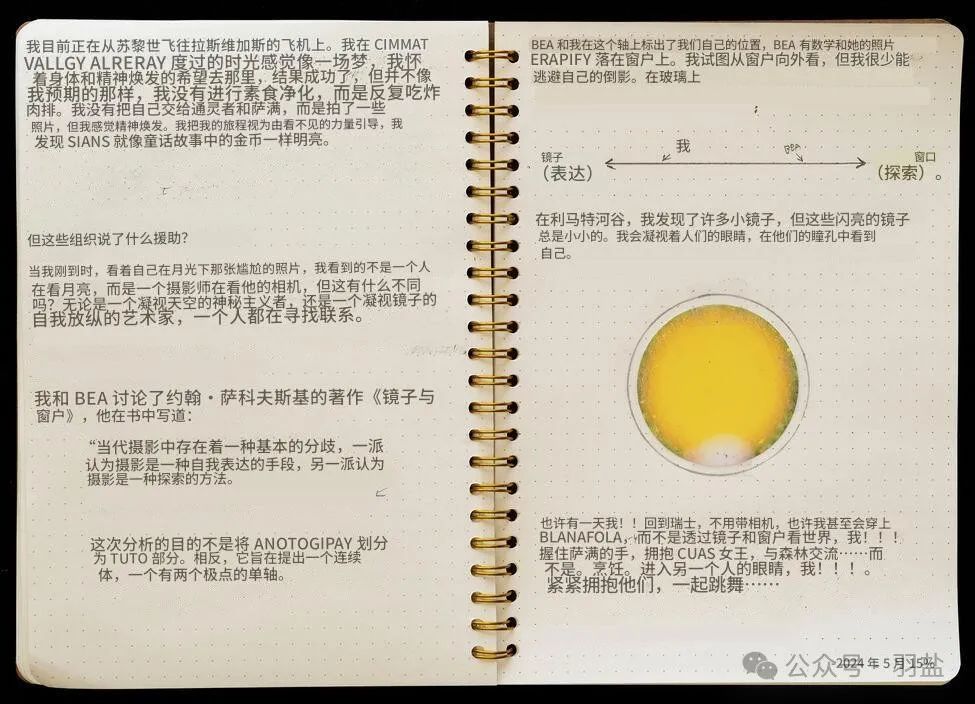 以下是埃里克·索斯在拍摄期间做的《利马特河谷日记》,同名展览使用的就是日记中的图片,和日记的实物。