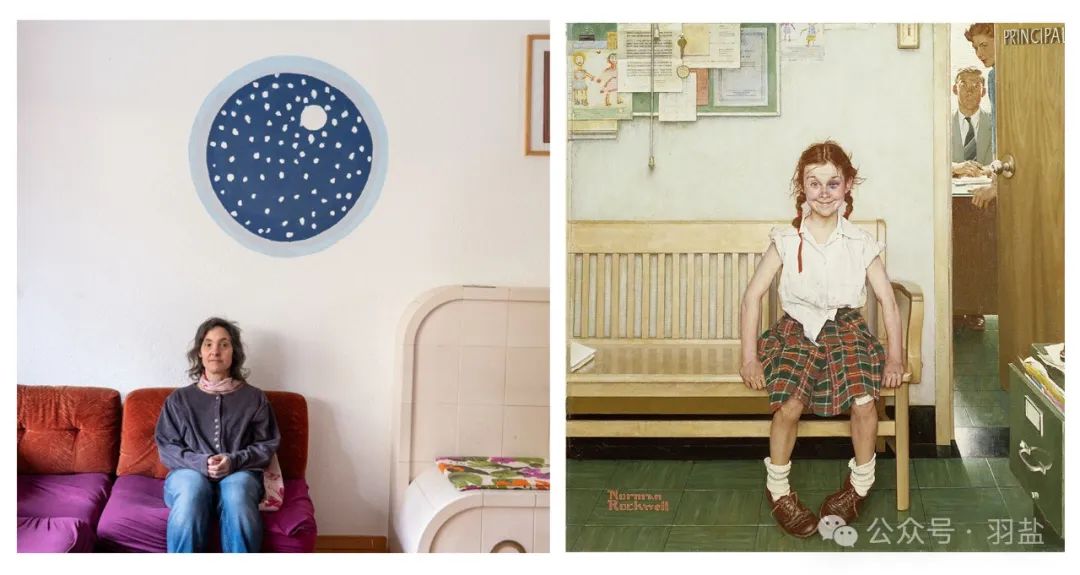 Alec Soth USA. 2024.Limmat Valley Diary© Alec Soth | Magnum Photos对于这里面的一位能看到人们的精神动物的女士,我还是很想多啰嗦一句——她一定是个天真的女巫。这张图不眼熟么?这不就是美国著名插图艺术家洛克·威尔的《带黑眼圈的年轻女士》老了的模样么?