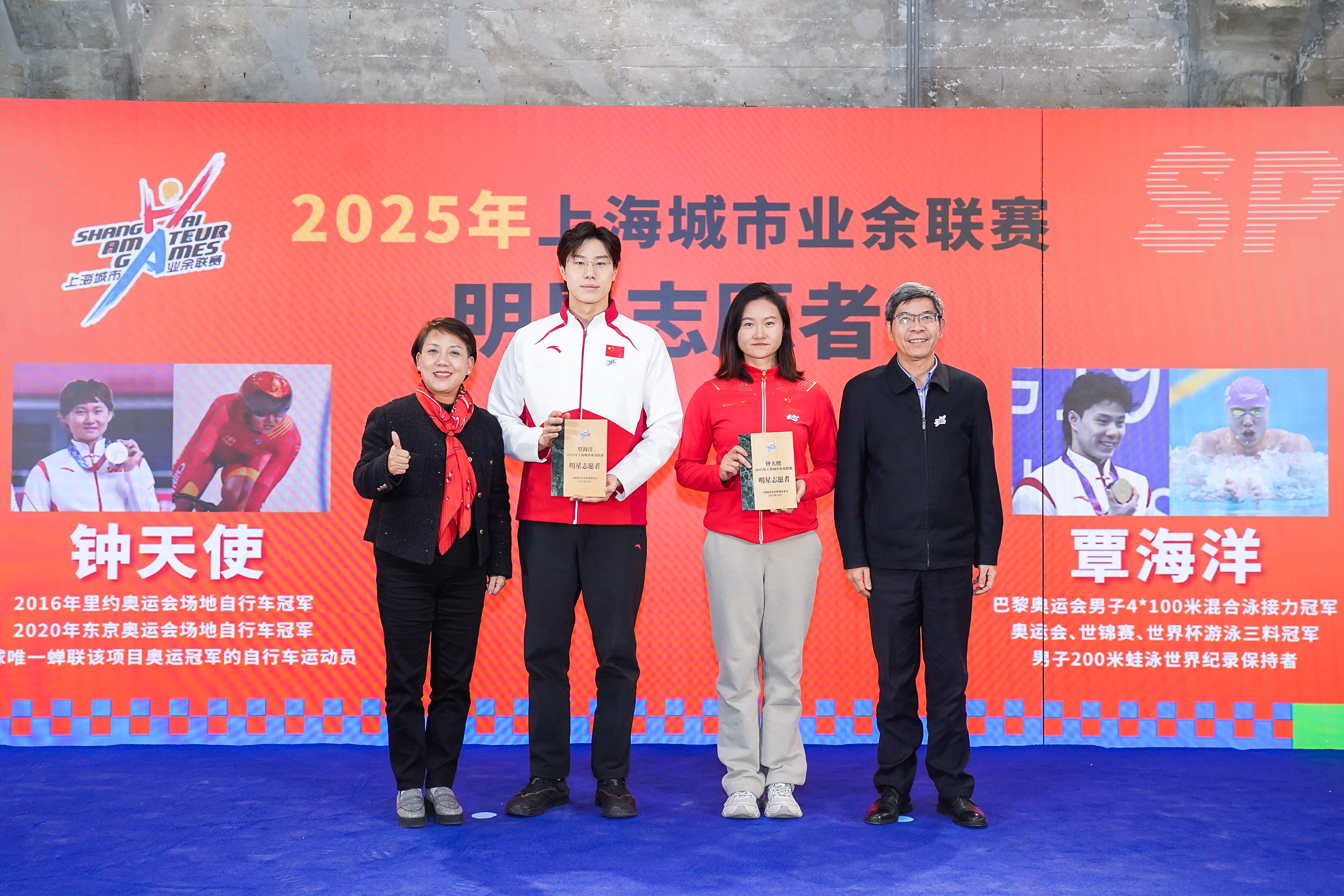 “一起上赛场,人人享健康”。12月26日下午,2025年上海城市业余联赛推介会在杨浦滨江明华糖仓举行。上海市体育局副局长宋慧为奥运冠军钟天使、覃海洋颁发2025年上海城市业余联赛明星志愿者纪念牌。浙江省体育局副局长毛根洪等出席活动。