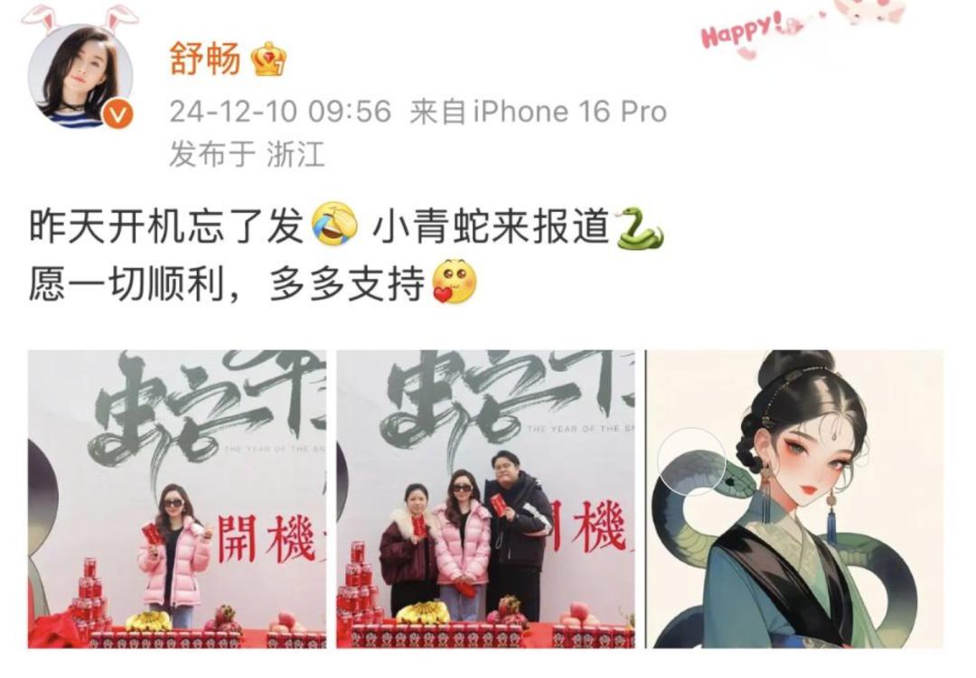 今年年初,舒畅在采访中透露,她在直播带货之余成功晋升为制作人,并计划推出自己的短剧作品。冬天,舒畅的微博里久违地出现了直播带货以外的开机剧照。