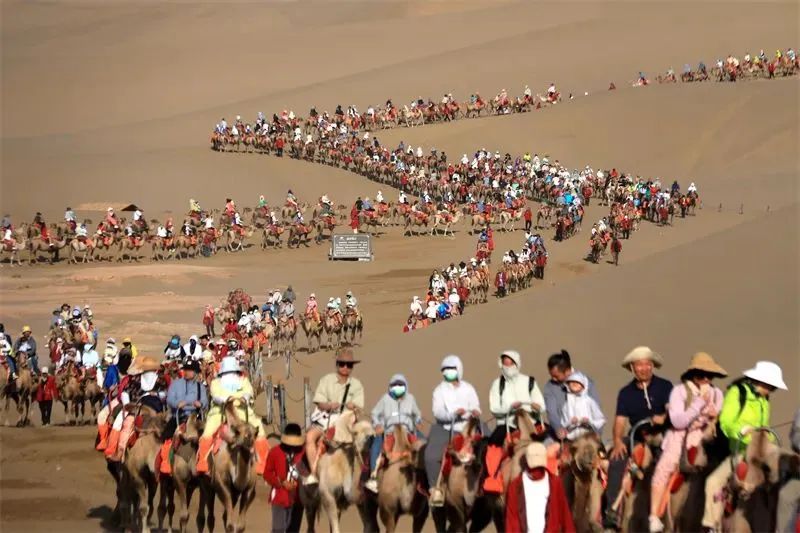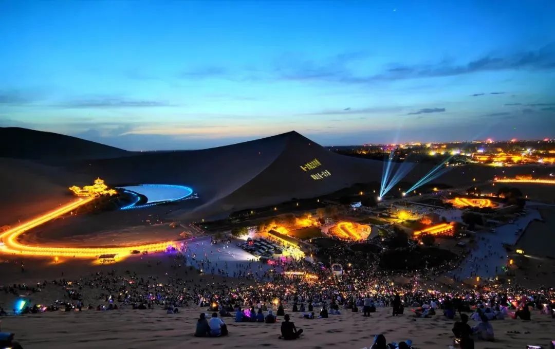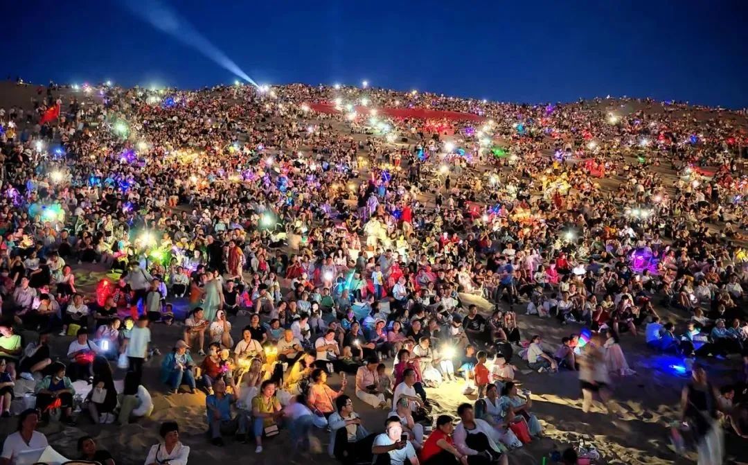 “万人星空演唱会”破圈出彩。依托厚重文化和丰富资源,抢抓旅游市场强势复苏有利时机,精心改造升级“万人星空演唱会”成为敦煌旅游“引流利器”,形成鸣沙山上、月牙泉畔、共赏星空、共话祖国的网红爆火打卡地,游客可通过赏月、观星,聆听古老传说、欣赏迷人夜景,推动敦煌从文化“出圈”到产业“破圈”。自6月15日以来,连续举办“万人星空演唱会”182场,相关信息网络传播量超100亿次,多次登上热搜榜。国庆专场演唱会备受瞩目,当600平方米的巨幅国旗在鸣沙山山坡托举升起,将演唱会推向高潮,国庆假期传播量超过5.87亿。